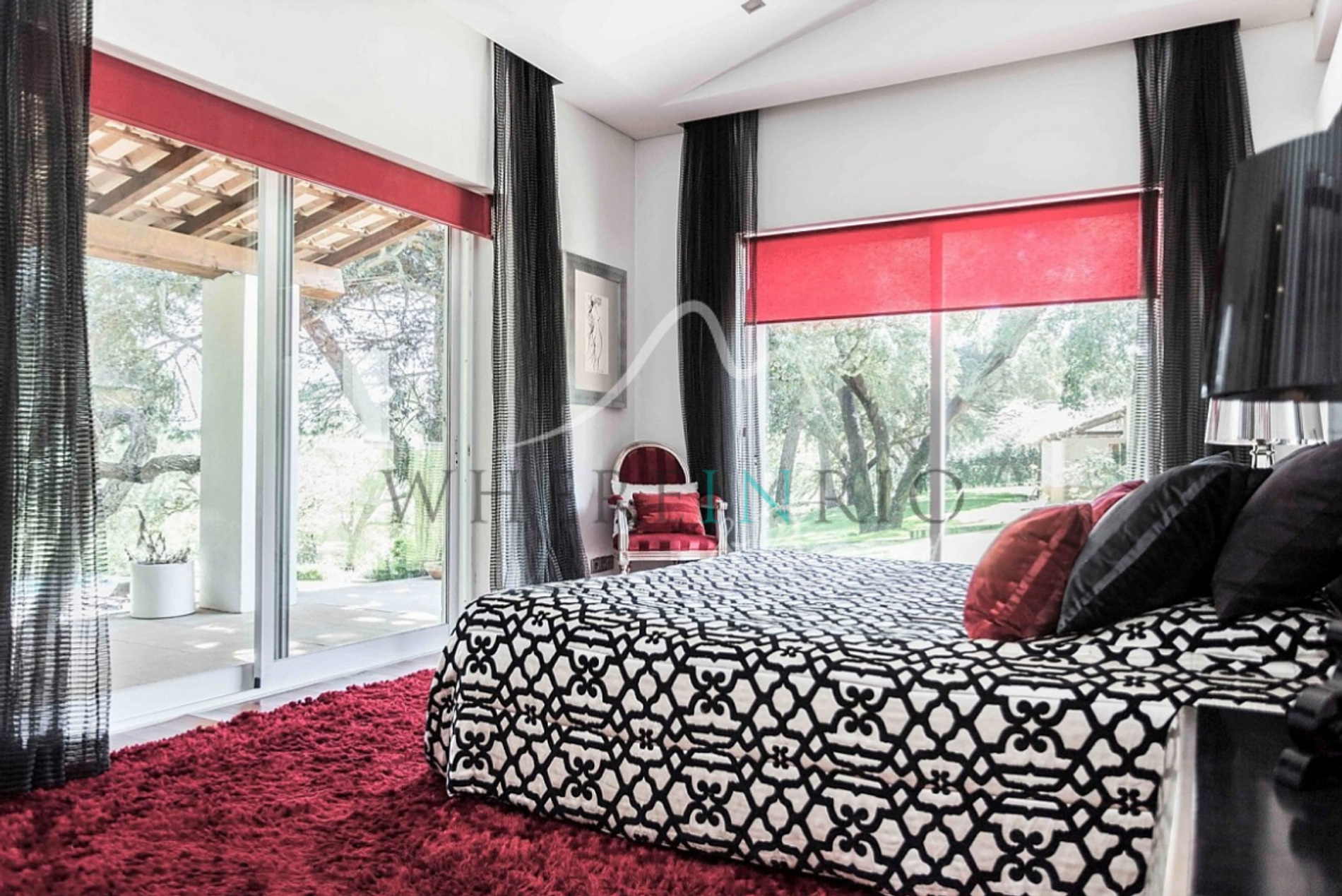 The four suites are generously spacious and comfortable, all providing access to the terrace and garden, with some offering views of the pool. Upstairs, a spacious glass mezzanine houses the office.