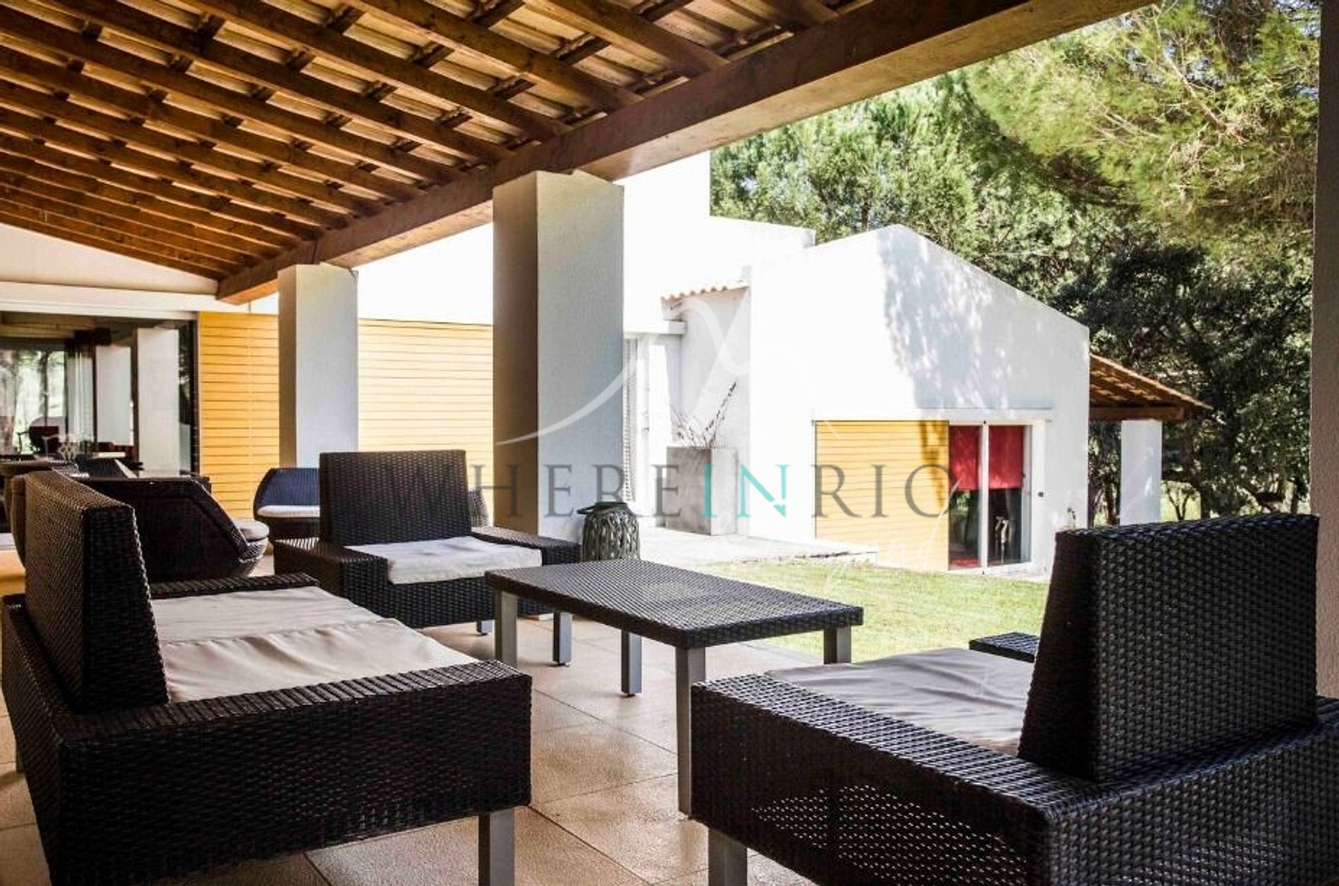 The second house features a modern living room with a dining area, two suites, a fully equipped kitchen, and a third bedroom located on the mezzanine. The swimming pool area is furnished with outdoor furniture, sun loungers, and hammocks. The house is equipped with air conditioning and parking facilities. Situated just a 20-minute drive from the finest beaches of Comporta and Melides, and only an hour away from Lisbon.