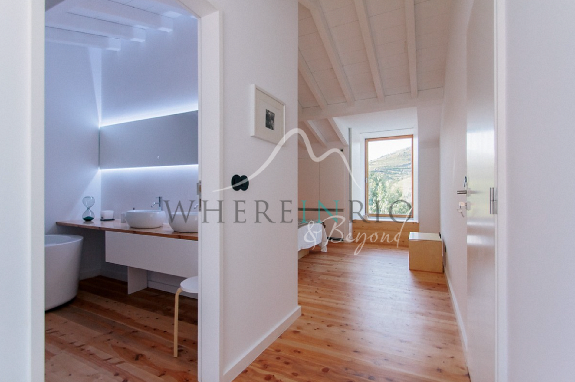The villa features two stunning balcony/sundecks offering panoramic views of the vineyards and the Douro River. Guests can enjoy direct access to the infinity pool deck, perfect for leisurely swims or simply soaking in the breathtaking surroundings. Divided into two independent spaces – the main house and studio – the villa boasts modern amenities and versatile spaces, including a multipurpose old wine cellar and fully-equipped kitchens.