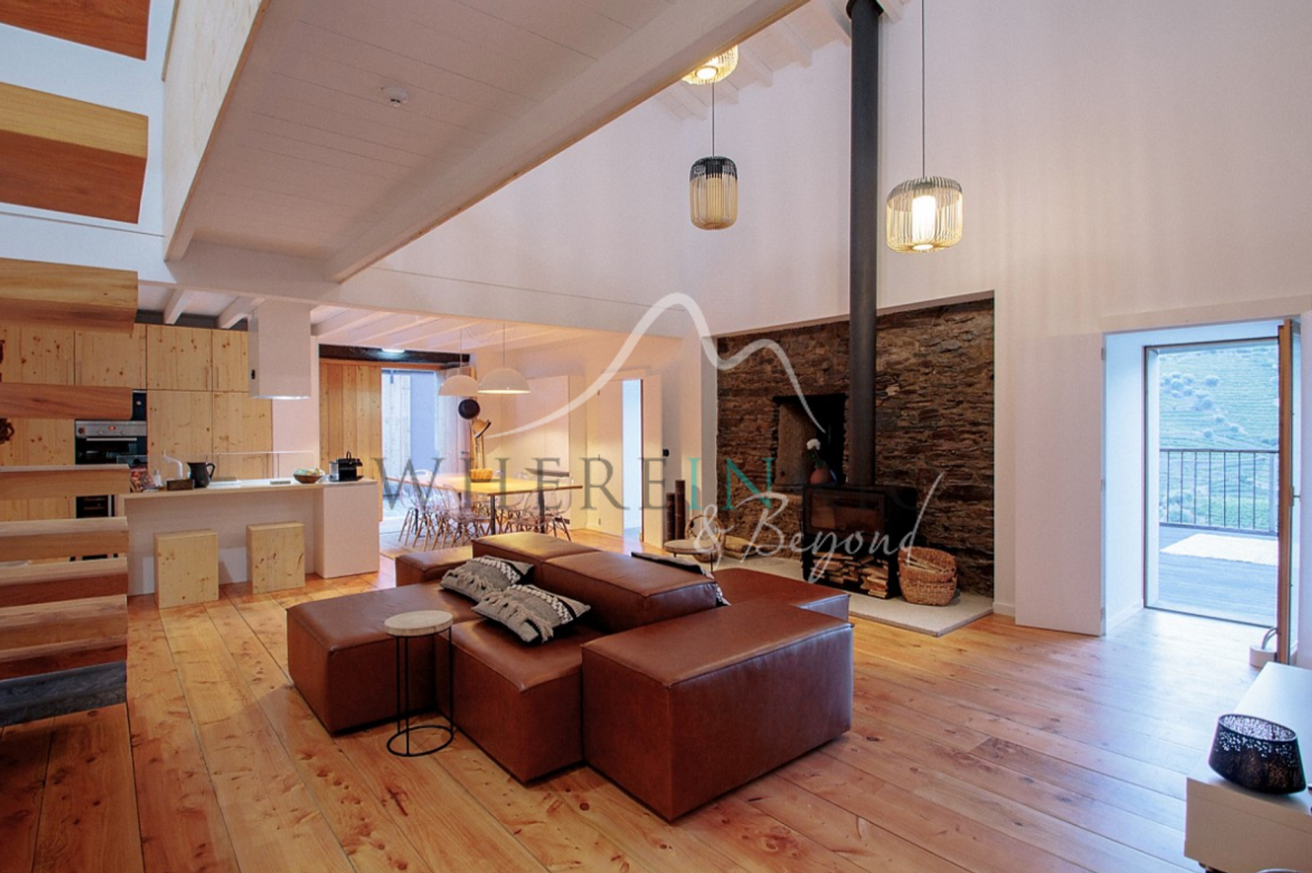 This villa is situated on the affluent banks of the Douro River, halfway between Régua and Vila Real, within the Feitoria perimeter, renowned for producing the highest quality wine.