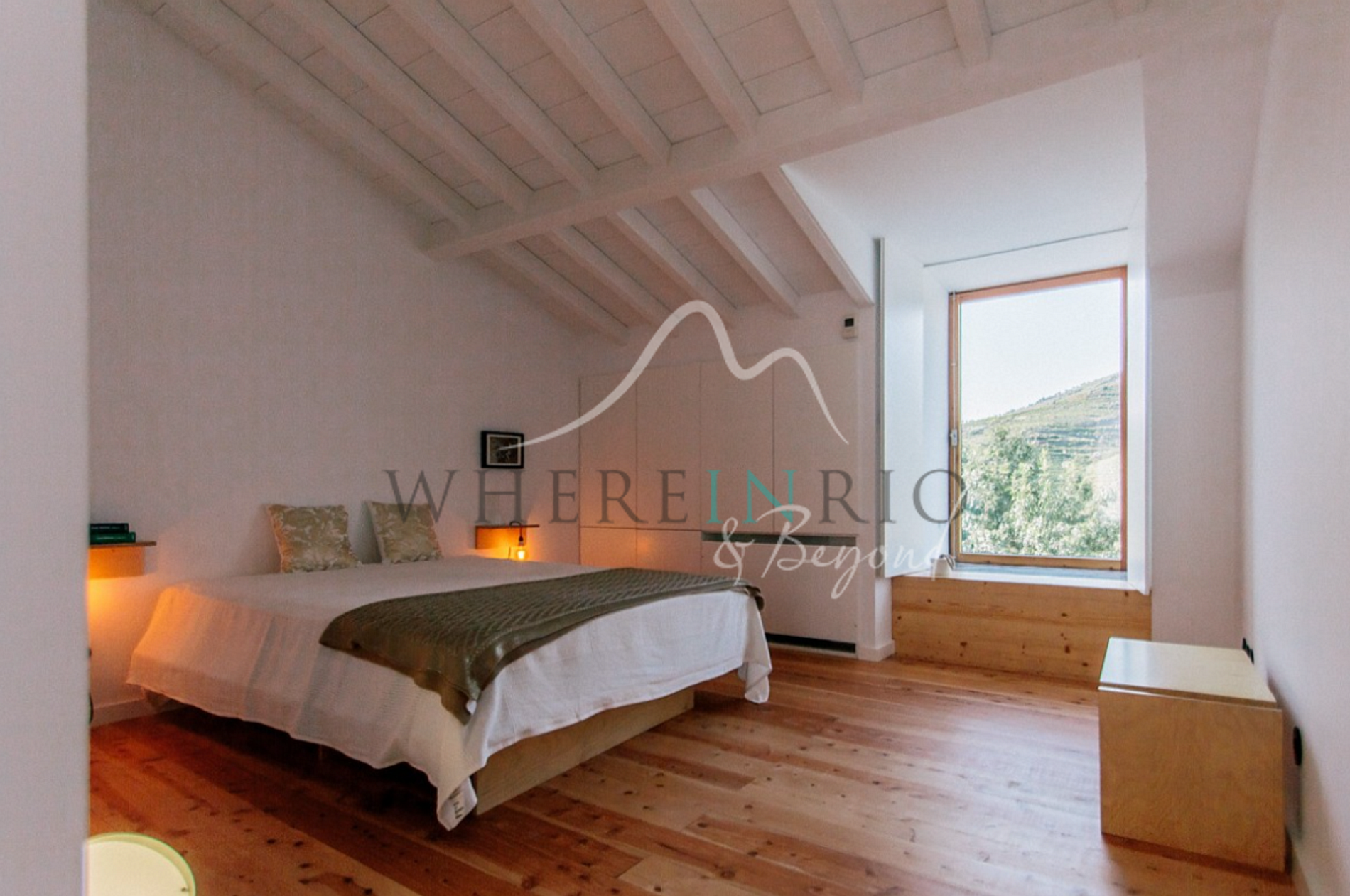 This villa is situated on the affluent banks of the Douro River, halfway between Régua and Vila Real, within the Feitoria perimeter, renowned for producing the highest quality wine.