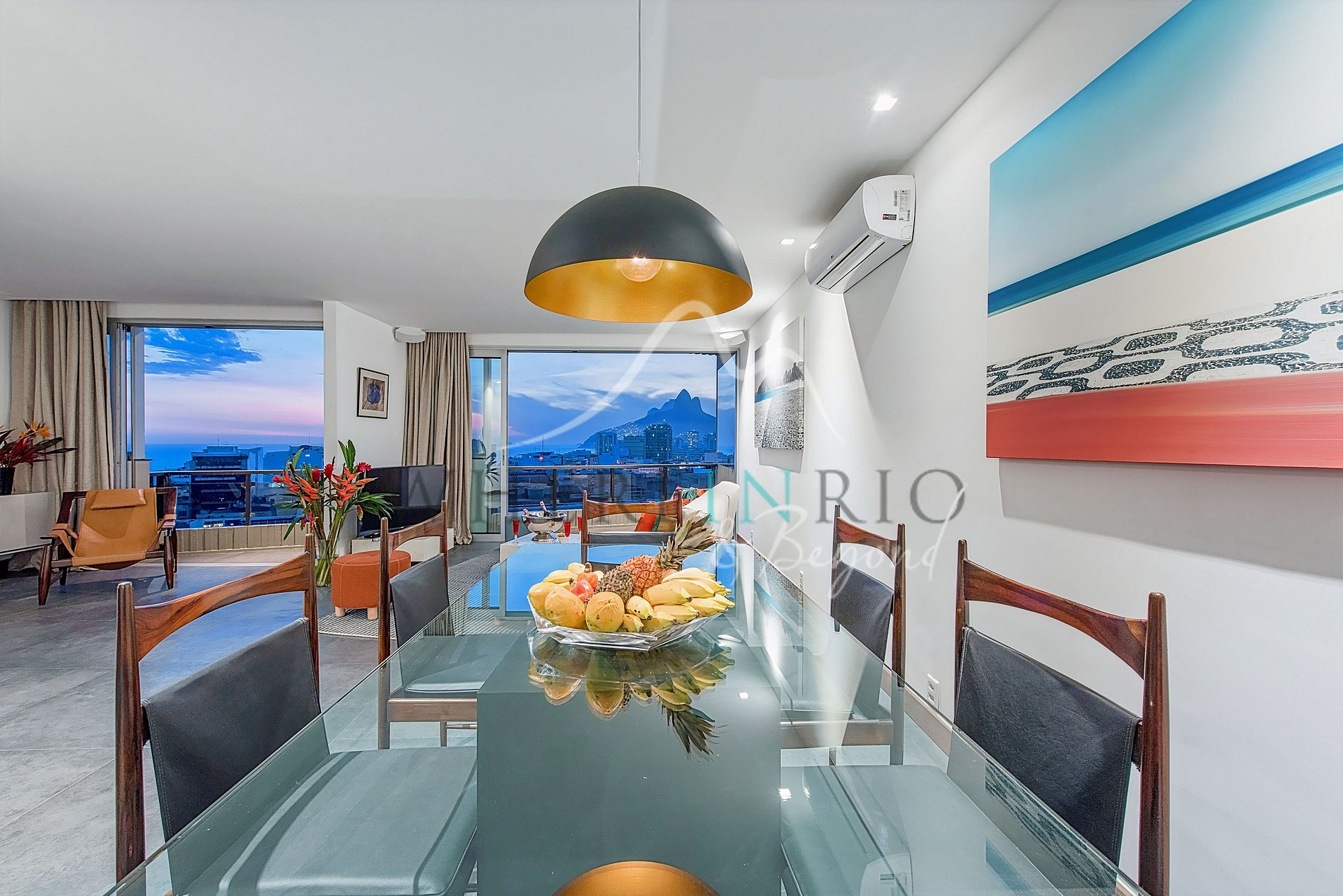 Elegant 3-bedroom luxury penthouse in Ipanema with private pool and panoramic views of the ocean, mountains and Morro Dois Irmãos. Perfect seasonal rental close to the beaches of Ipanema and Copacabana.