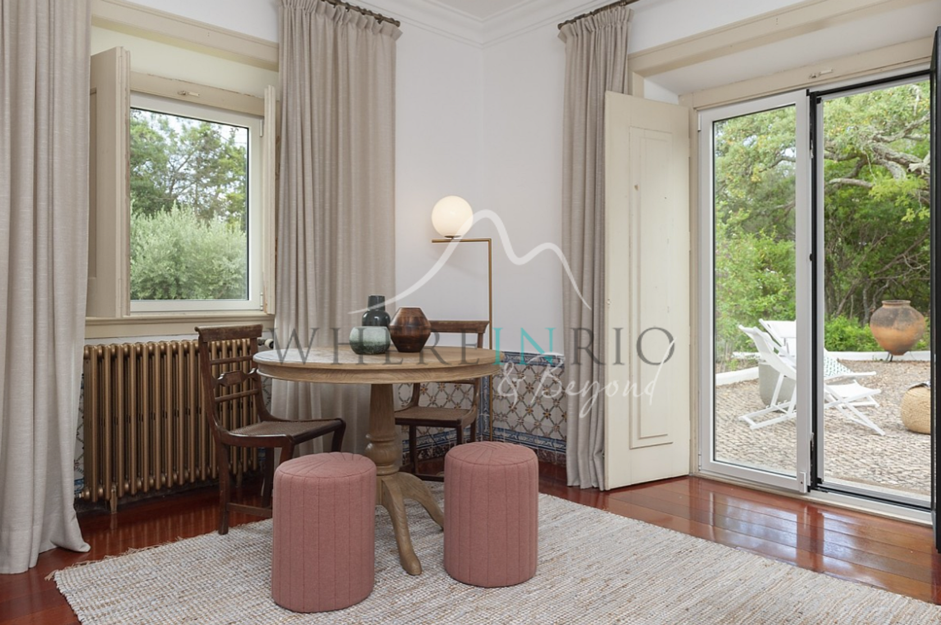 This beautiful 11 hectares estate is located in the heart of the Arrábida Natural Park, just 40 minutes from Lisbon and only a few minutes from some of the most beautiful beahces at the blue cost and the Arrábida Marine Natural Reserve. Within the estate, amidst a diverse array of lush native vegetation, flowers, and trees, along with numerous birds and some friendly wild animals such as wild pigs, foxes, and rabbits, guests will discover the Four Houses.
