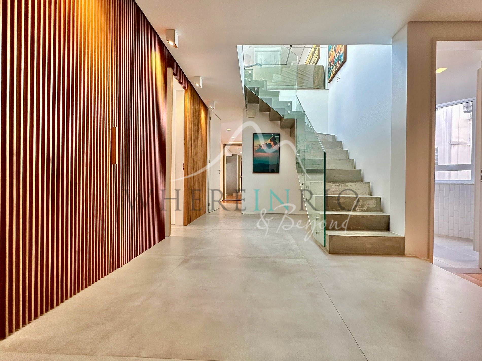 Luxury triplex penthouse with private pool and 3 suites, recently renovated by a renowned architecture firm. Located in a quiet and central street of Copacabana, just minutes from the beach and Avenida Atlântica.
