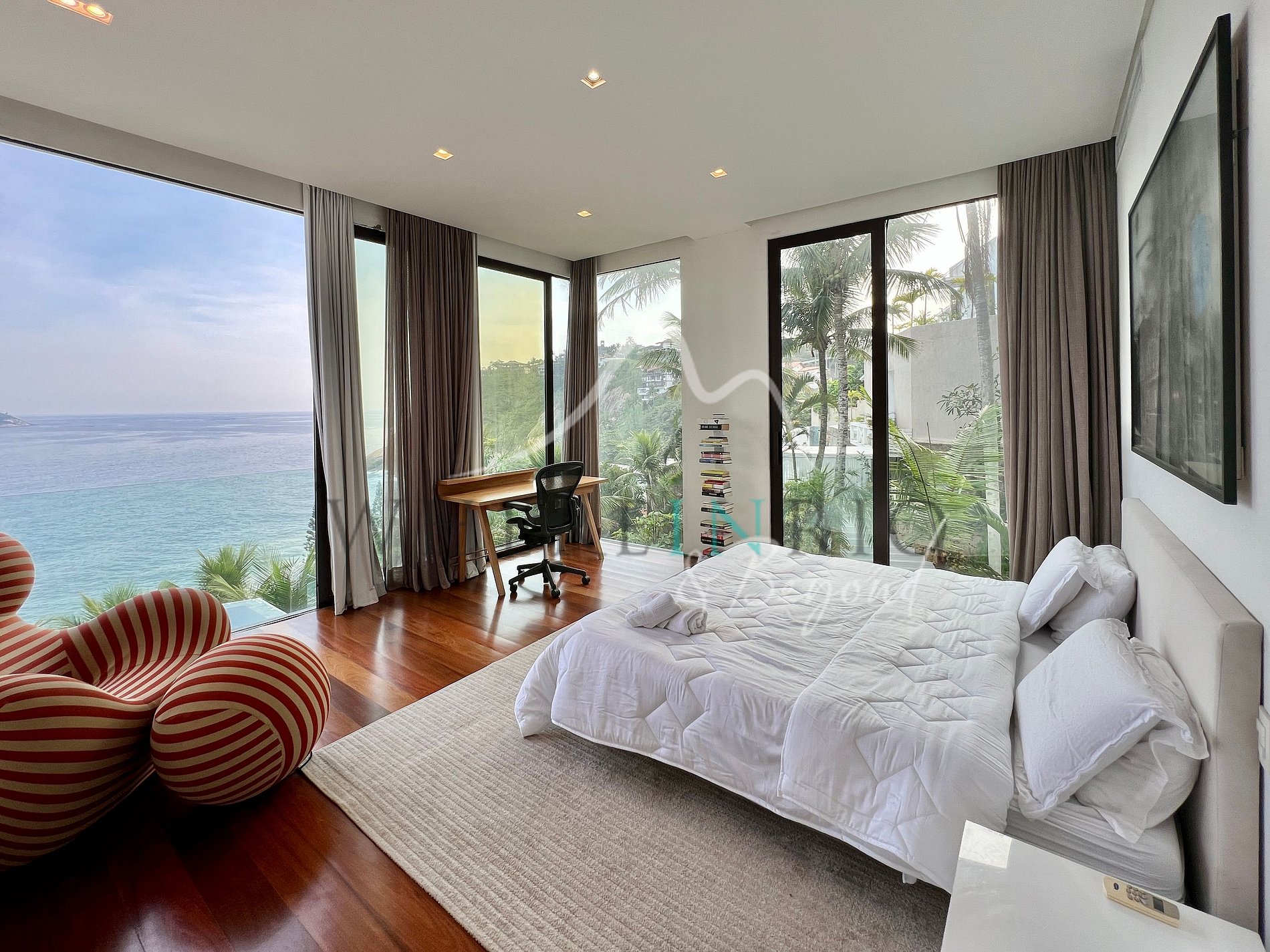 The property offers exceptional views thanks to its floor-to-ceiling windows that provide plenty of light. In a modern and sophisticated design, the property offers 5 suites that can accommodate up to 9 people.