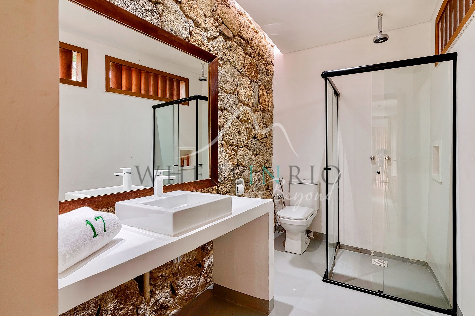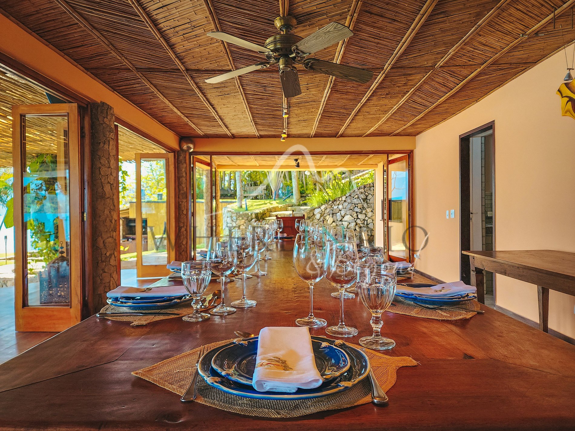 This property blends comfort, privacy, and natural design with stone, wood, and bamboo. Wi-Fi throughout. The luxury condominium offers tennis court, soccer field, and gym. Access only by boat or helicopter, ensuring a private experience.