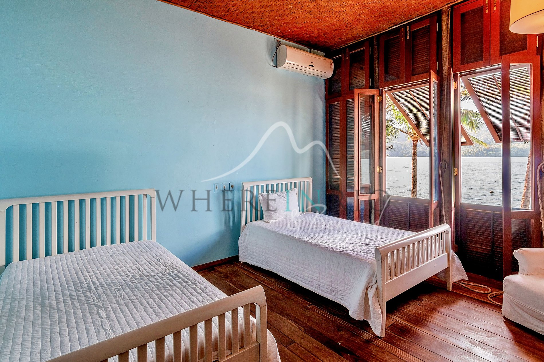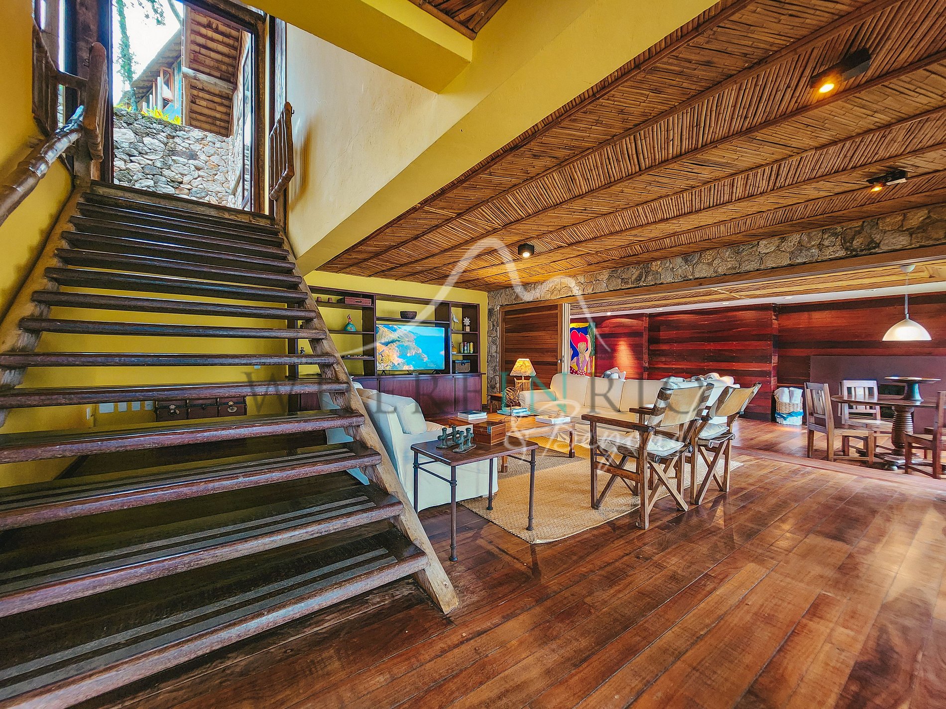 This property blends comfort, privacy, and natural design with stone, wood, and bamboo. Wi-Fi throughout. The luxury condominium offers tennis court, soccer field, and gym. Access only by boat or helicopter, ensuring a private experience.