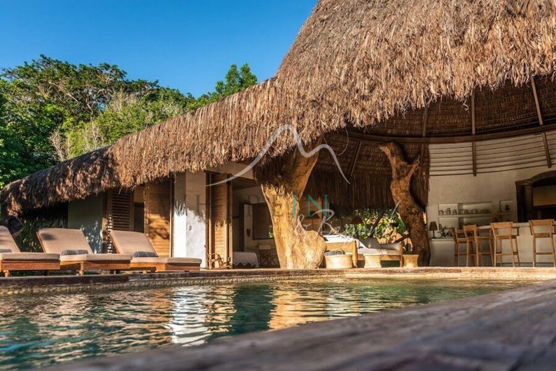 The architecture is unique, inspired and soothing. The layout — with the kitchen at the heart of the home and the suites and pool around it — brings warmth, creativity and a sense of connection with nature.
