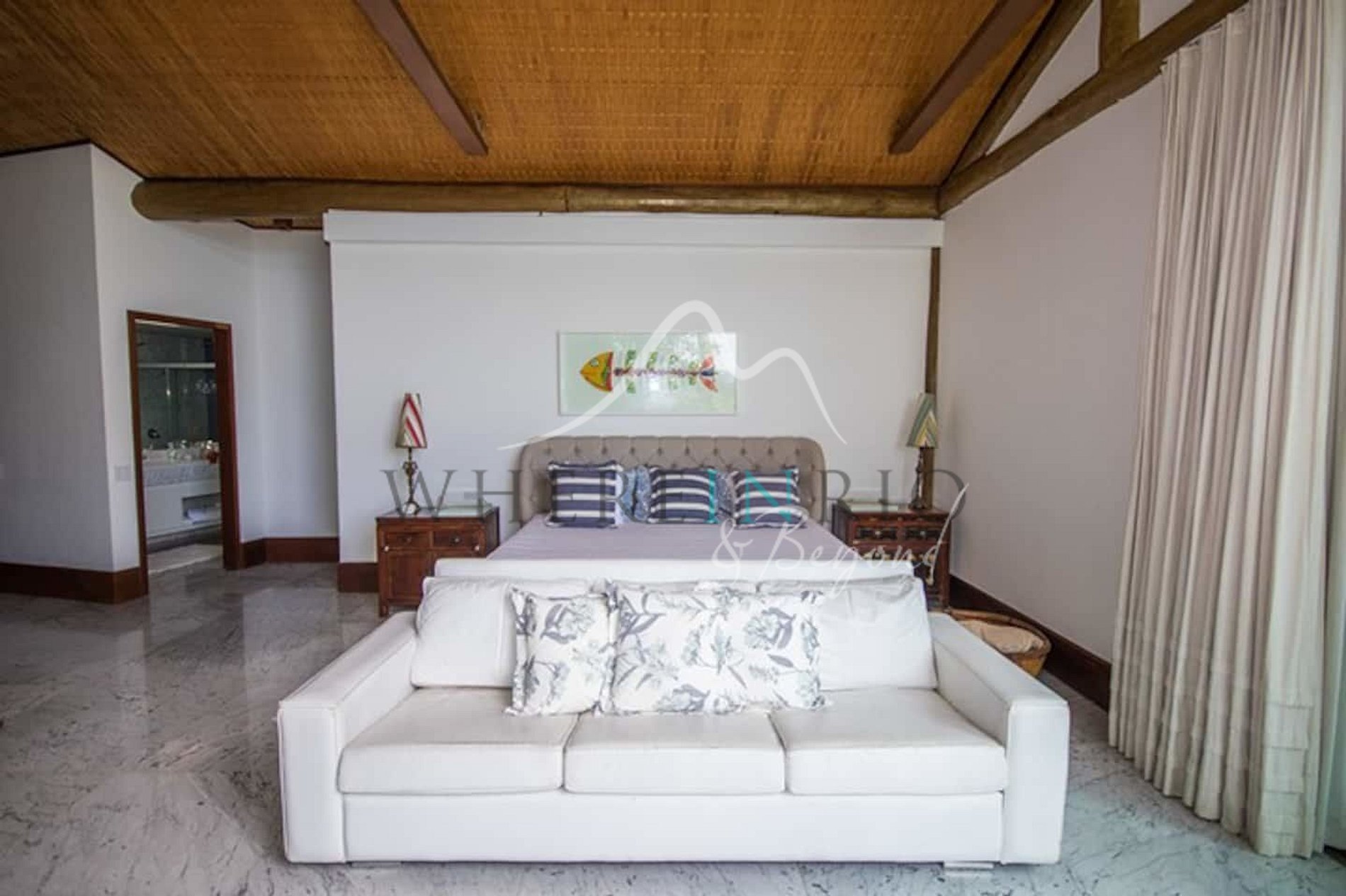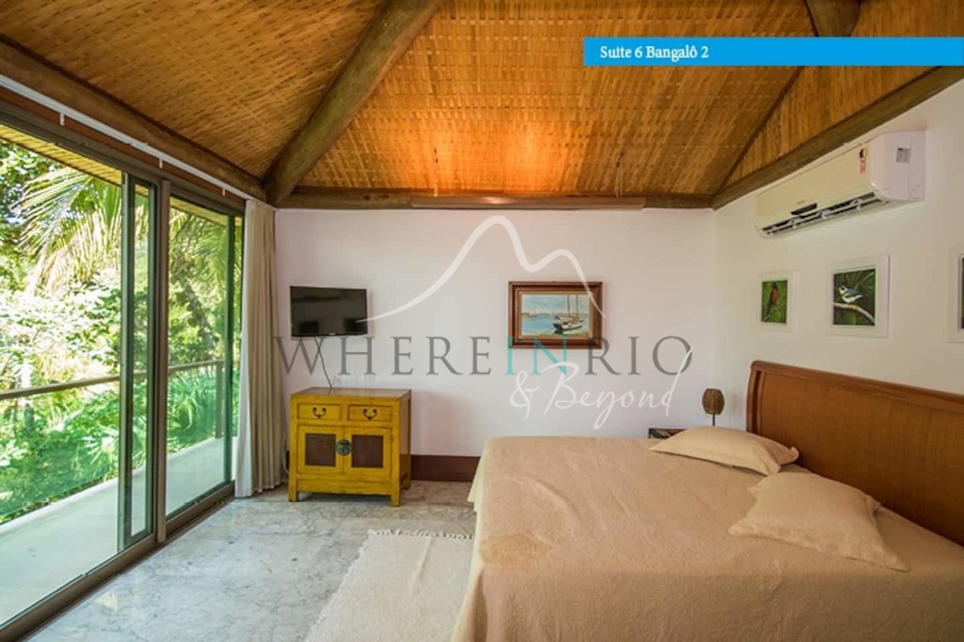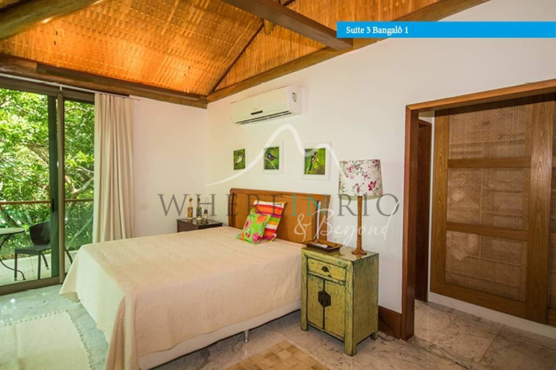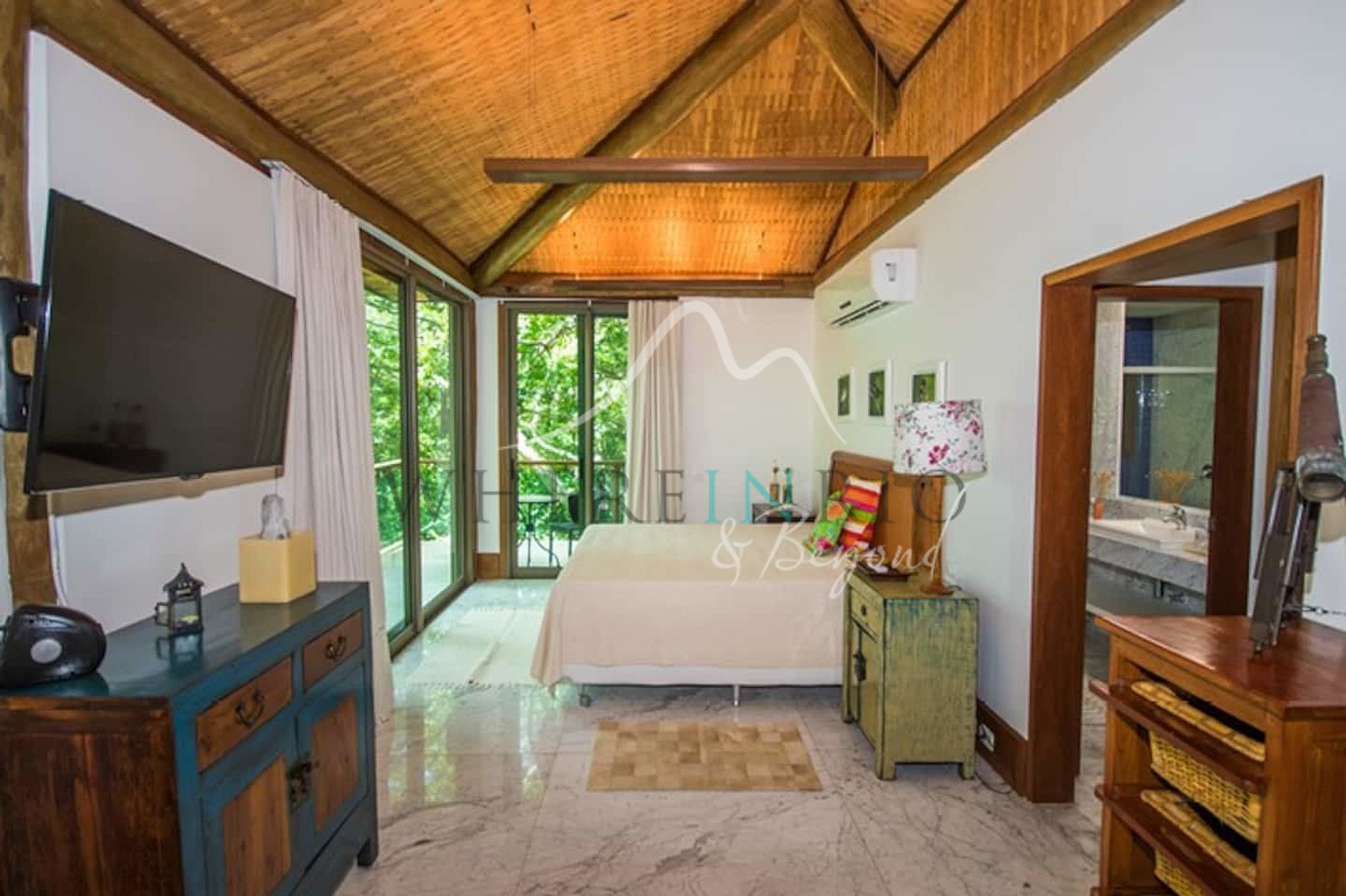 Designed in harmony with its natural surroundings, the main house and bungalows offer spacious suites with private terraces. The gourmet area includes a professional barbecue, pizza oven, and large dining table. The glassed-in living room allows guests to enjoy panoramic island views.