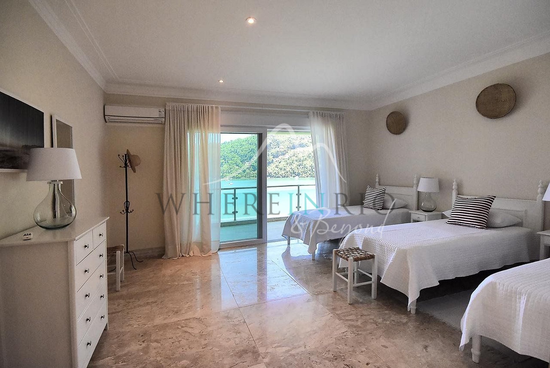 The mansion is accessible by car to the condominium, but boats are recommended for exploring private beaches. Parking for four cars. Nearest airport: Rio de Janeiro, 168 km, with boat transfers arranged for guests.