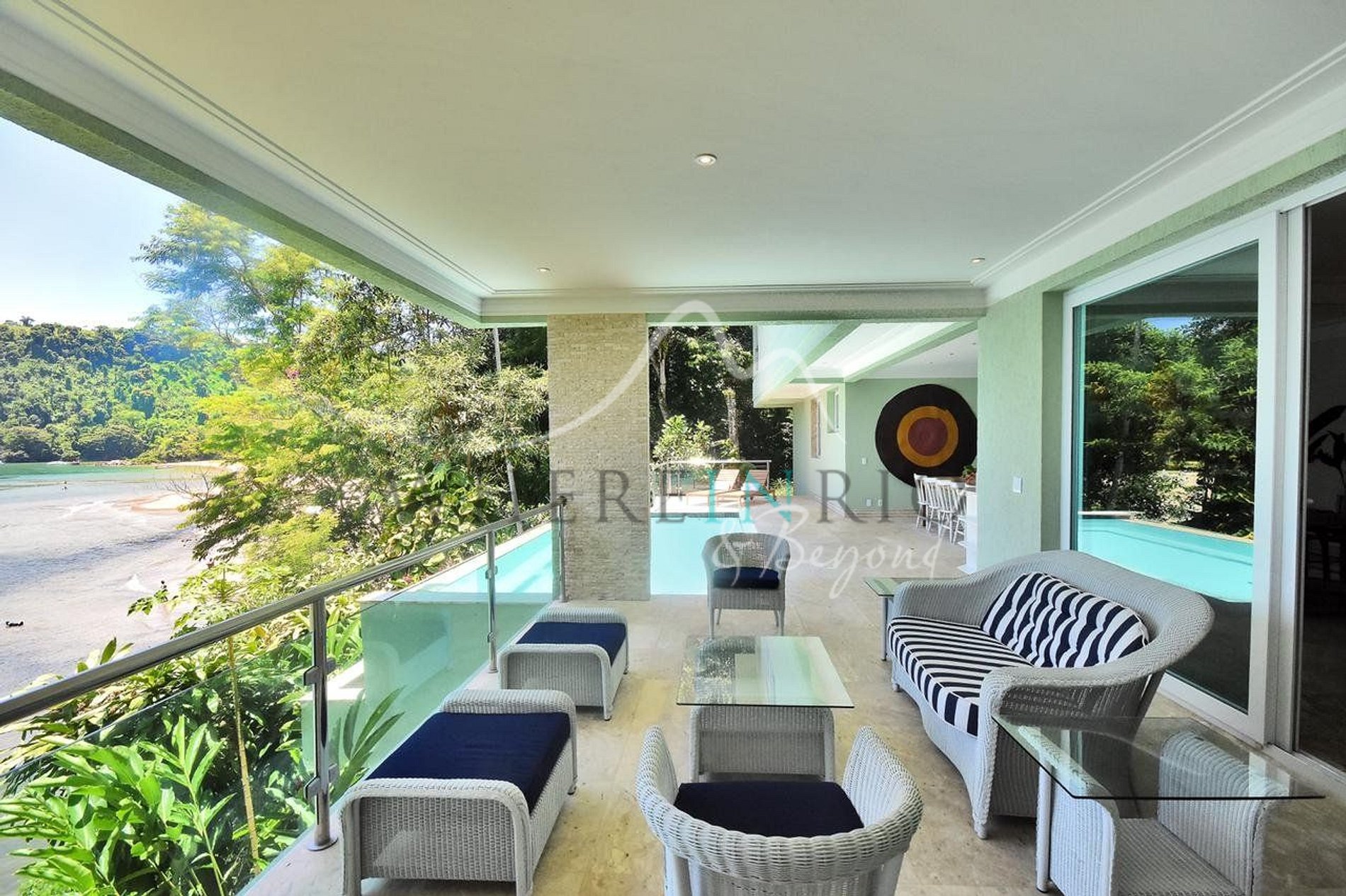 This luxury mansion in Angra dos Reis provides a unique experience in an exclusive condominium with two private beaches, a helipad, private pier, and six elegant suites. Pool, terraces with ocean views, and lush Atlantic forest create an unforgettable stay for families and groups.