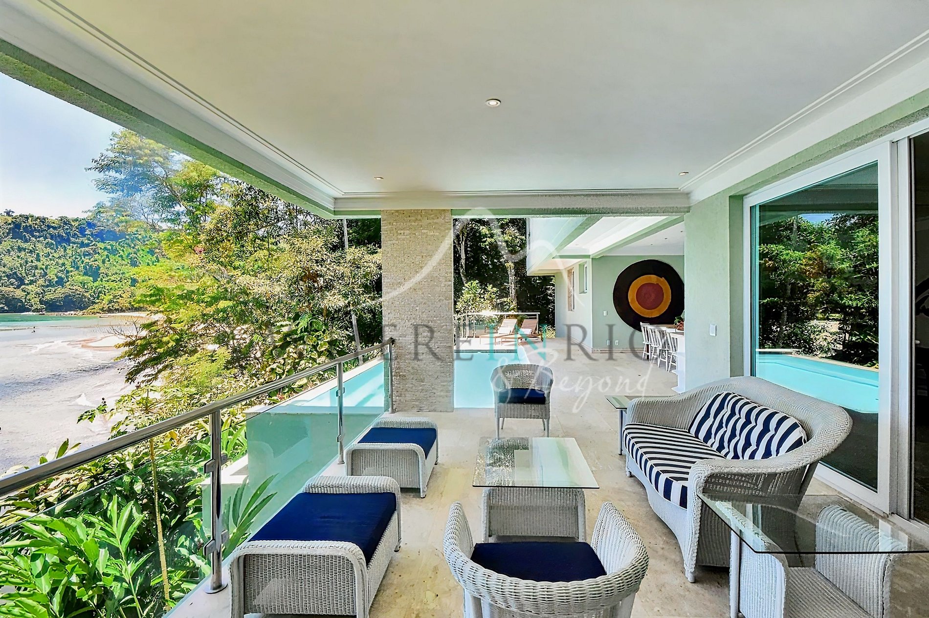 Guests enjoy full access to the mansion, terraces, pool, and private trails. Both condominium beaches are available at any time. Boats with crew are included, while fuel is the responsibility of the guest.