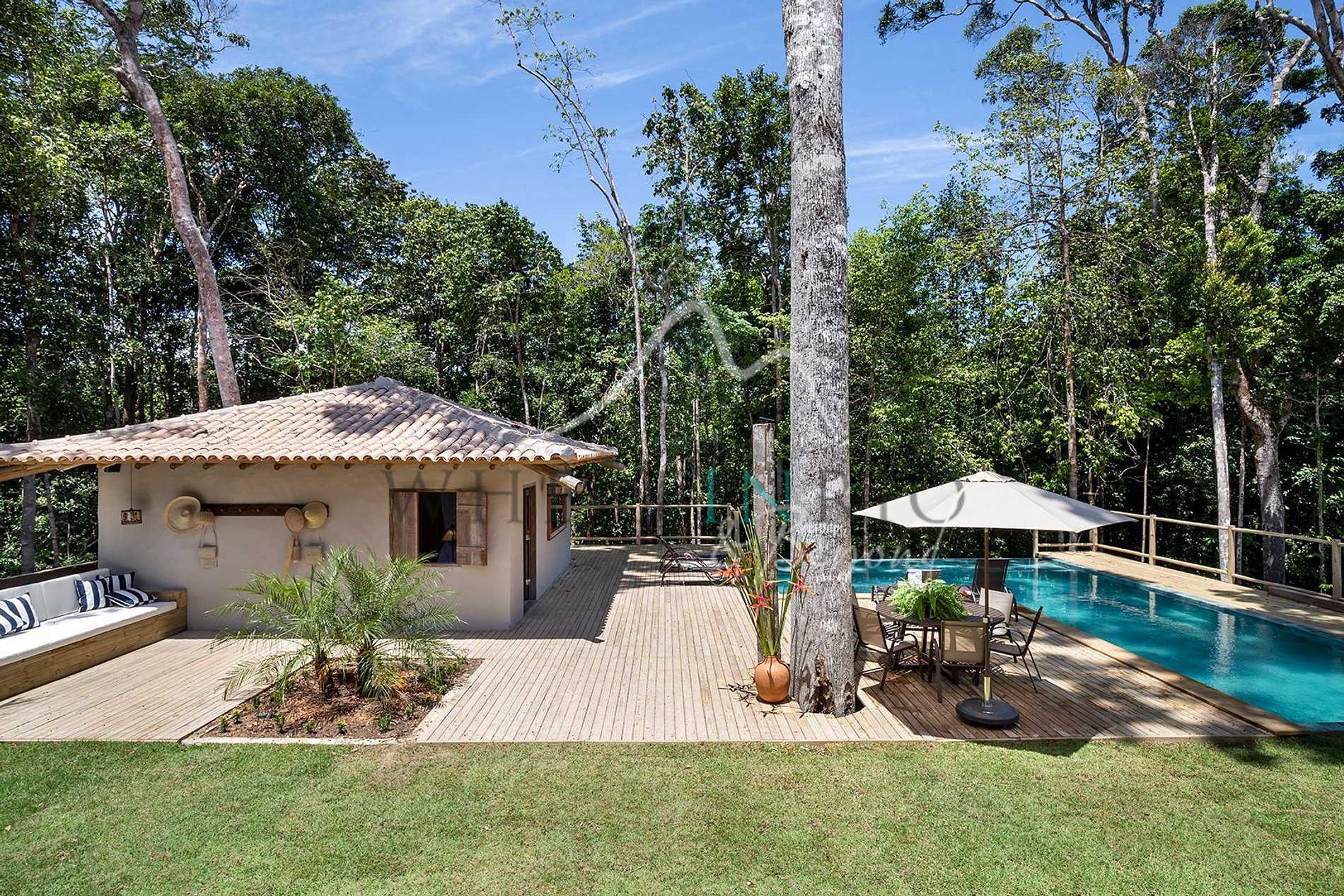 Boho-style luxury home in Trancoso with pool and hot tub, perfect for a peaceful stay.
