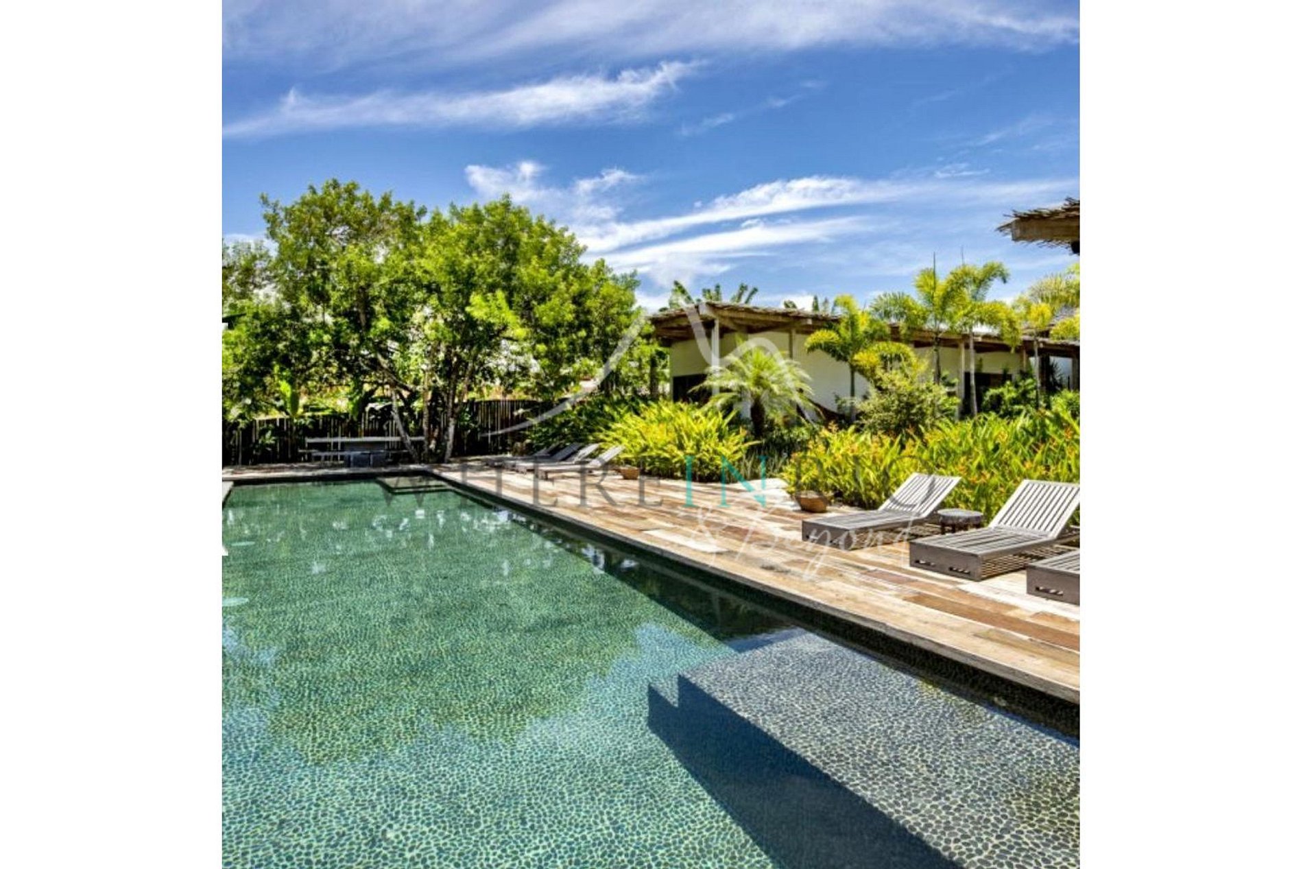 The 250 m² villa features 5 suites, a spacious open-plan living area, high ceilings, an infinity pool, and a wooden deck with forest views. Built with local materials like biriba, the design evokes the relaxed spirit of Mykonos and Ibiza. Perfect for up to 10 guests.