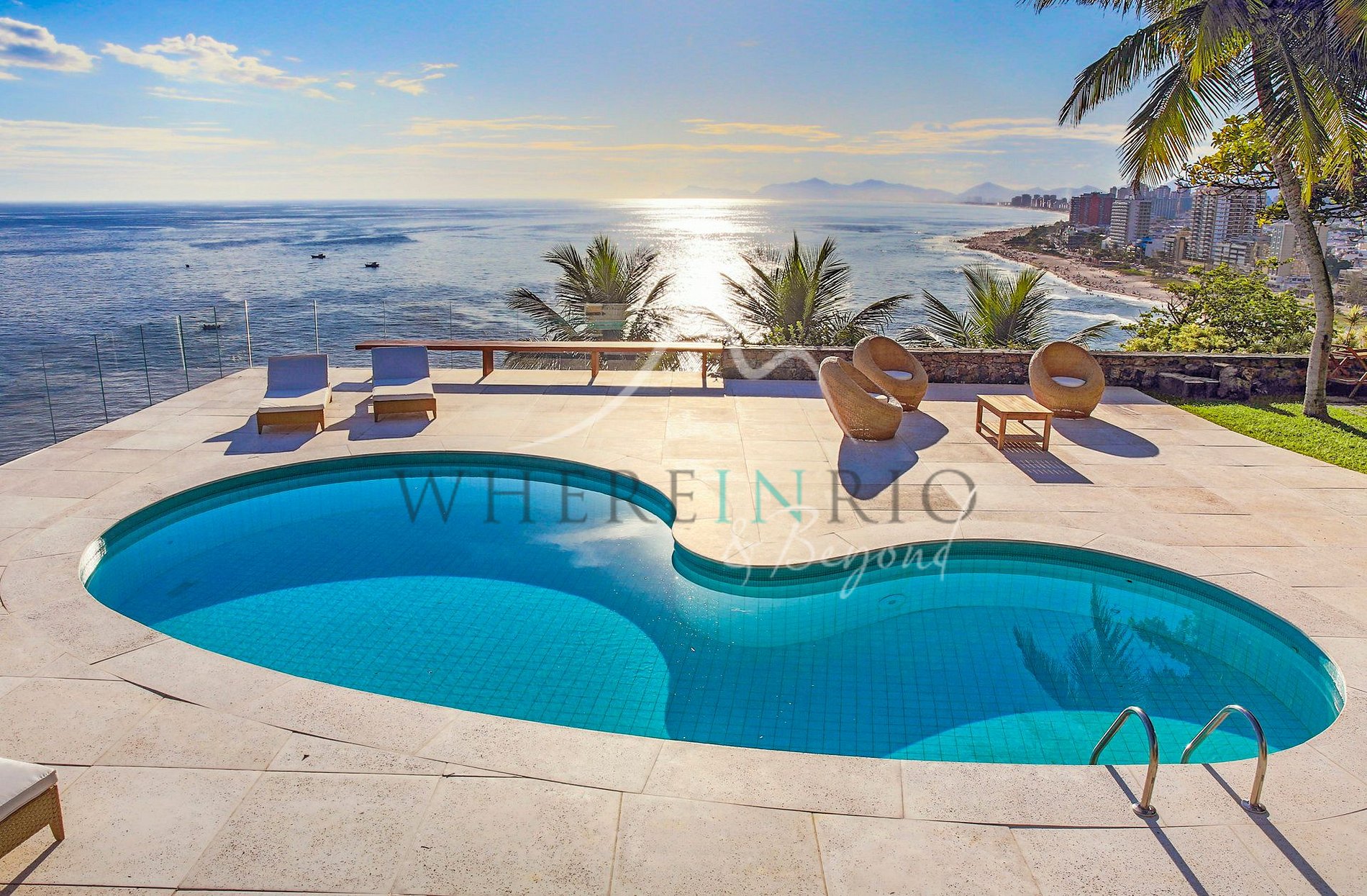 Stunning luxury mansion with pool and panoramic ocean view for vacation rental in the exclusive Joá neighborhood, Rio de Janeiro.