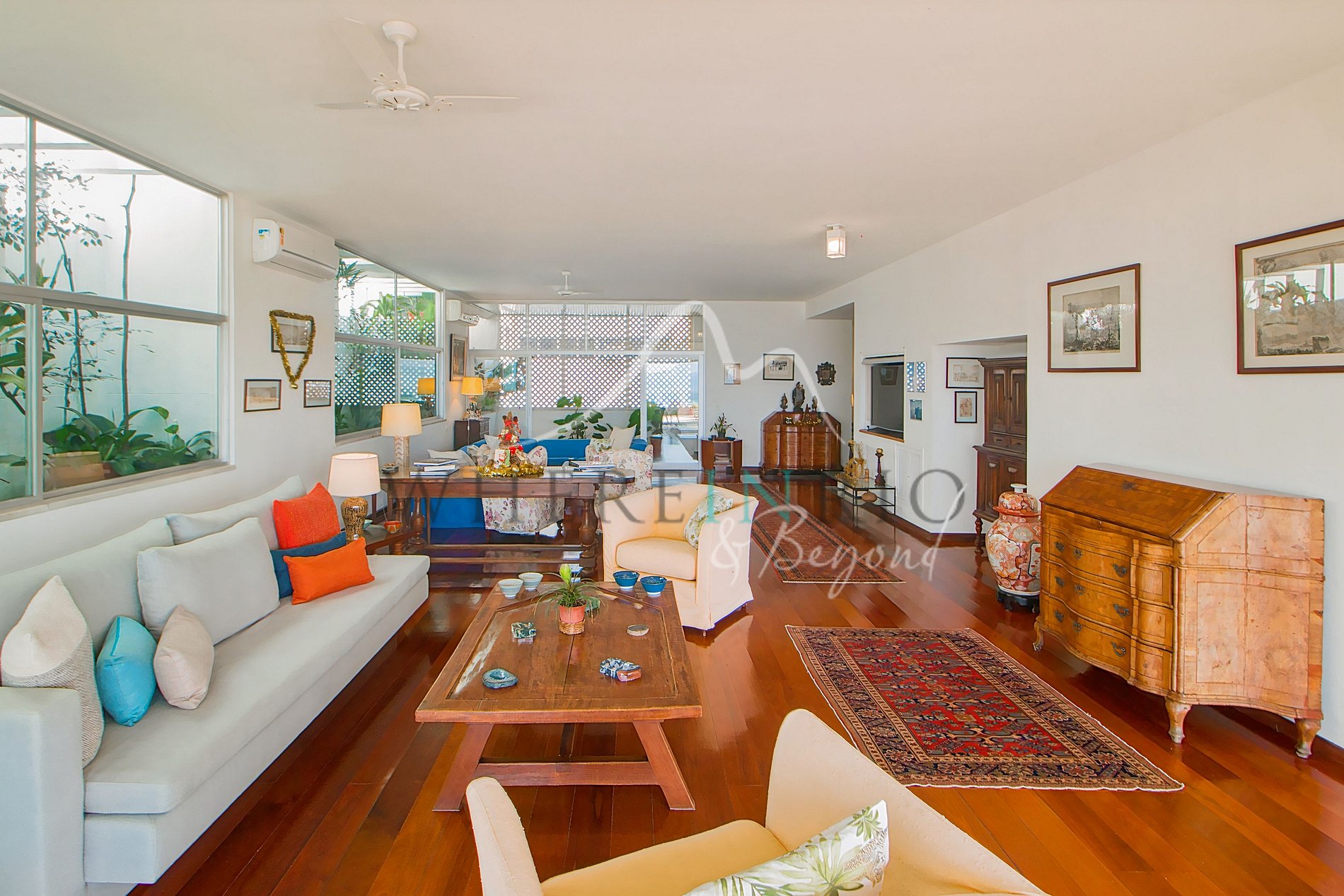 Spacious 600 m² tropical penthouse located directly on Ipanema Beach, ideal for large families. Bright, elegant and surrounded by terraces with panoramic views of Rio de Janeiro’s iconic skyline.