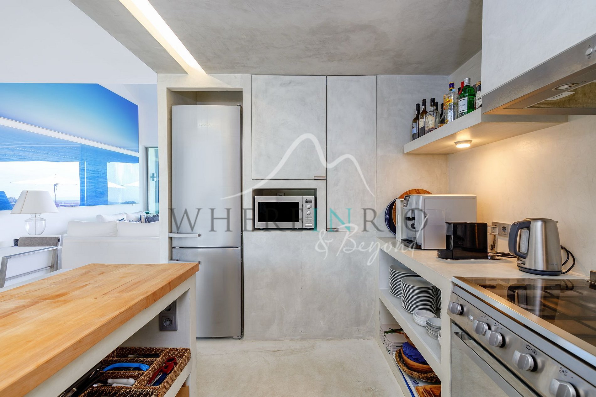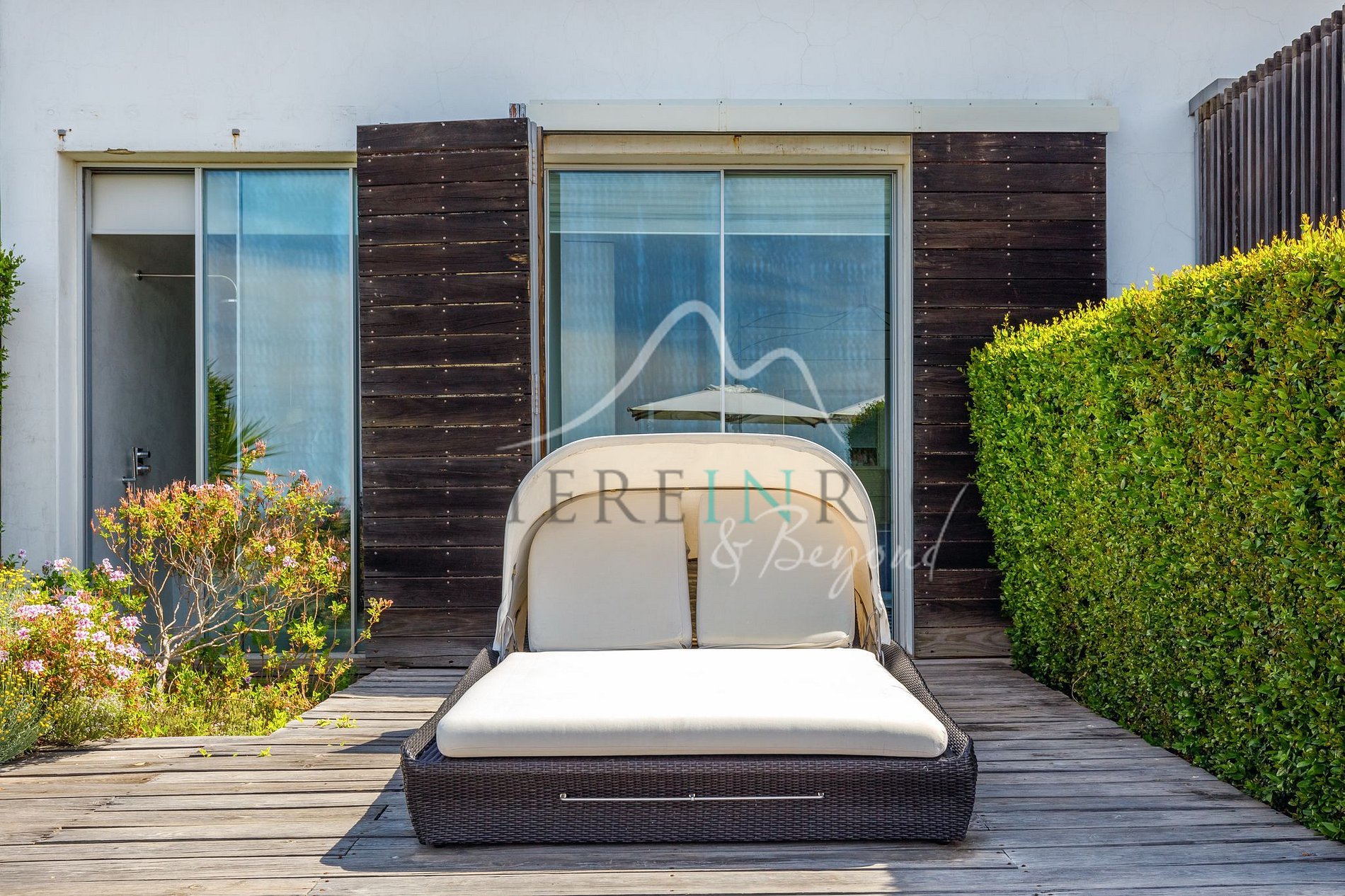 With three independent houses, the villa accommodates groups and families with full autonomy while maintaining shared spaces for socializing. The heated infinity pool and outdoor areas with views of the lagoon and sea ensure moments of relaxation and leisure immersed in the local landscape.