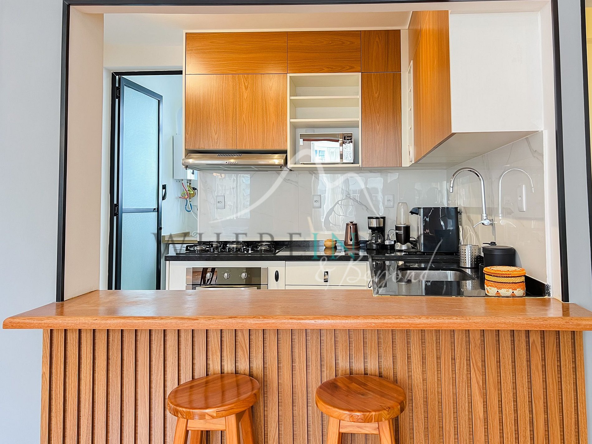 The apartment features a spacious living room with an open-plan kitchen, creating a warm and modern environment. The décor is contemporary, with stylish details and a touch of elegance. The kitchen is fully equipped for your convenience. The master bedroom is a suite with a queen-size bed and a balcony, ensuring comfort and tranquility, while the second bedroom has a double bed. The building offers 24-hour security for a peaceful and worry-free stay.