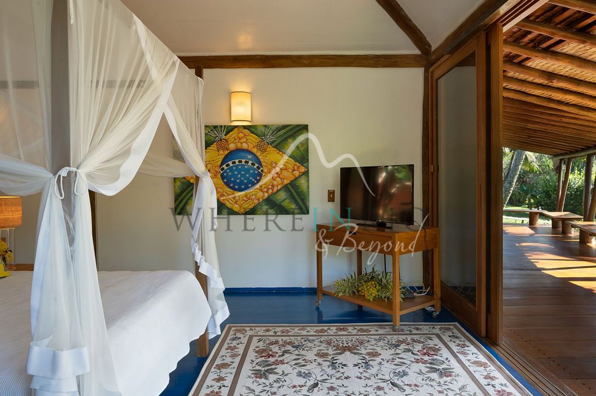 Built mostly in rustic wood and decorated by renowned designer Sig Bergamin, this house blends elegance, warmth, and tropical charm. Every detail is designed to offer a luxurious and immersive experience by the sea.