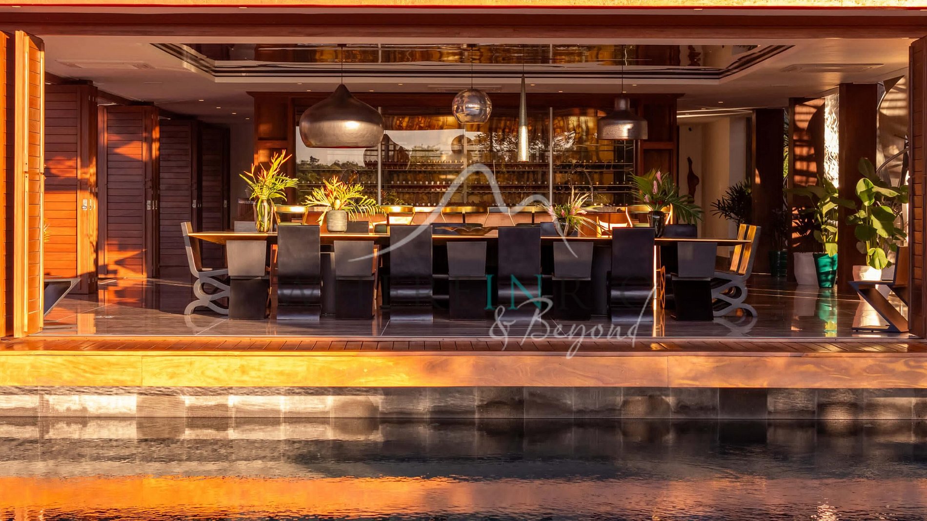 Harmonia House offers a sophisticated stay with nine spacious suites, an infinity pool with Aqua Bar, private cinema, fully equipped gym, wellness area, gourmet space with wine cellar, and direct access to the golf course. An exclusive golf cart is available to facilitate movement within the estate, ensuring comfort and convenience throughout your stay.