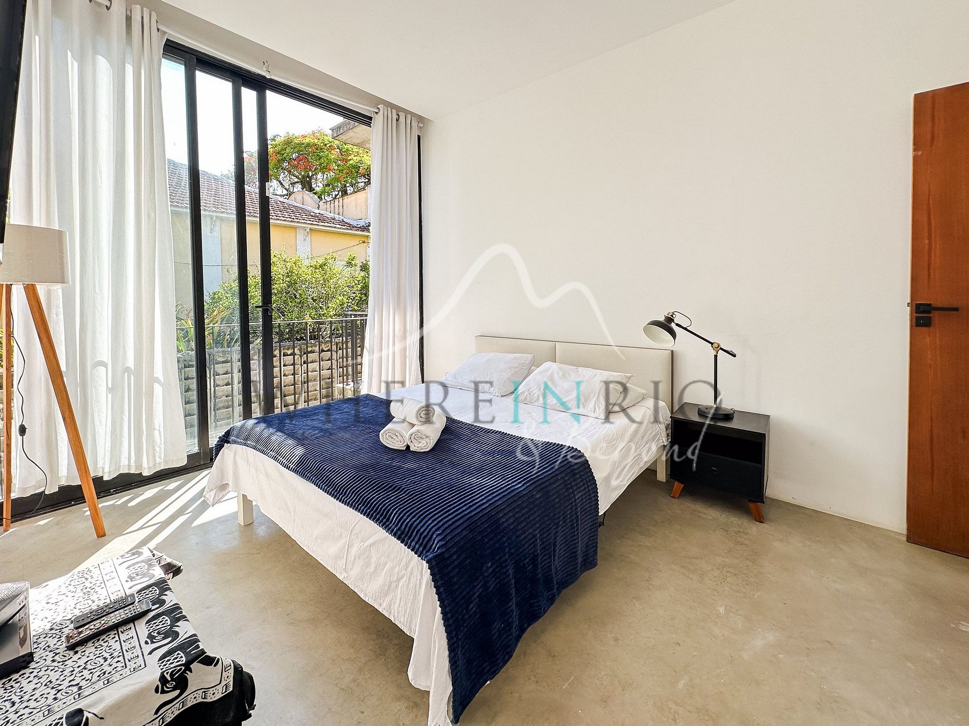 En la planta baja encontrará un acogedor salón, con posibilidad de celebrar un pequeño evento o conferencia, un aseo para invitados y acceso a la piscina. Una habitación independiente con cocina y minibar, tiene su suite abierta frente a la piscina, ¡ideal para refrescarse en los días calurosos de Río de Janeiro!