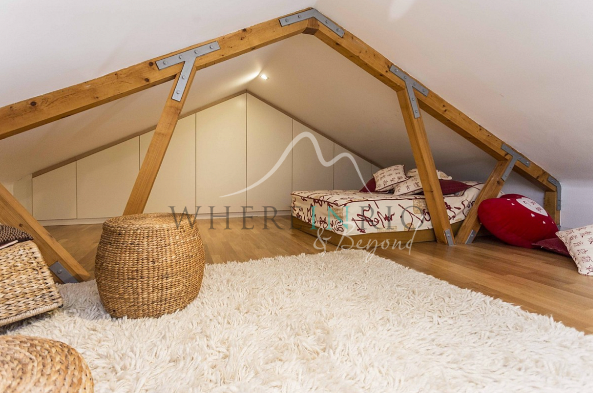 La propriedad cuenta con 6 habitaciones y 2 altillos, situados en una parcela de jardín de 700 m2. Incluye una piscina, un área de descanso junto a la piscina, un campo deportivo multifuncional para fútbol, voleibol, baloncesto y tenis, un área de comedor al aire libre y un amplio espacio de estacionamiento