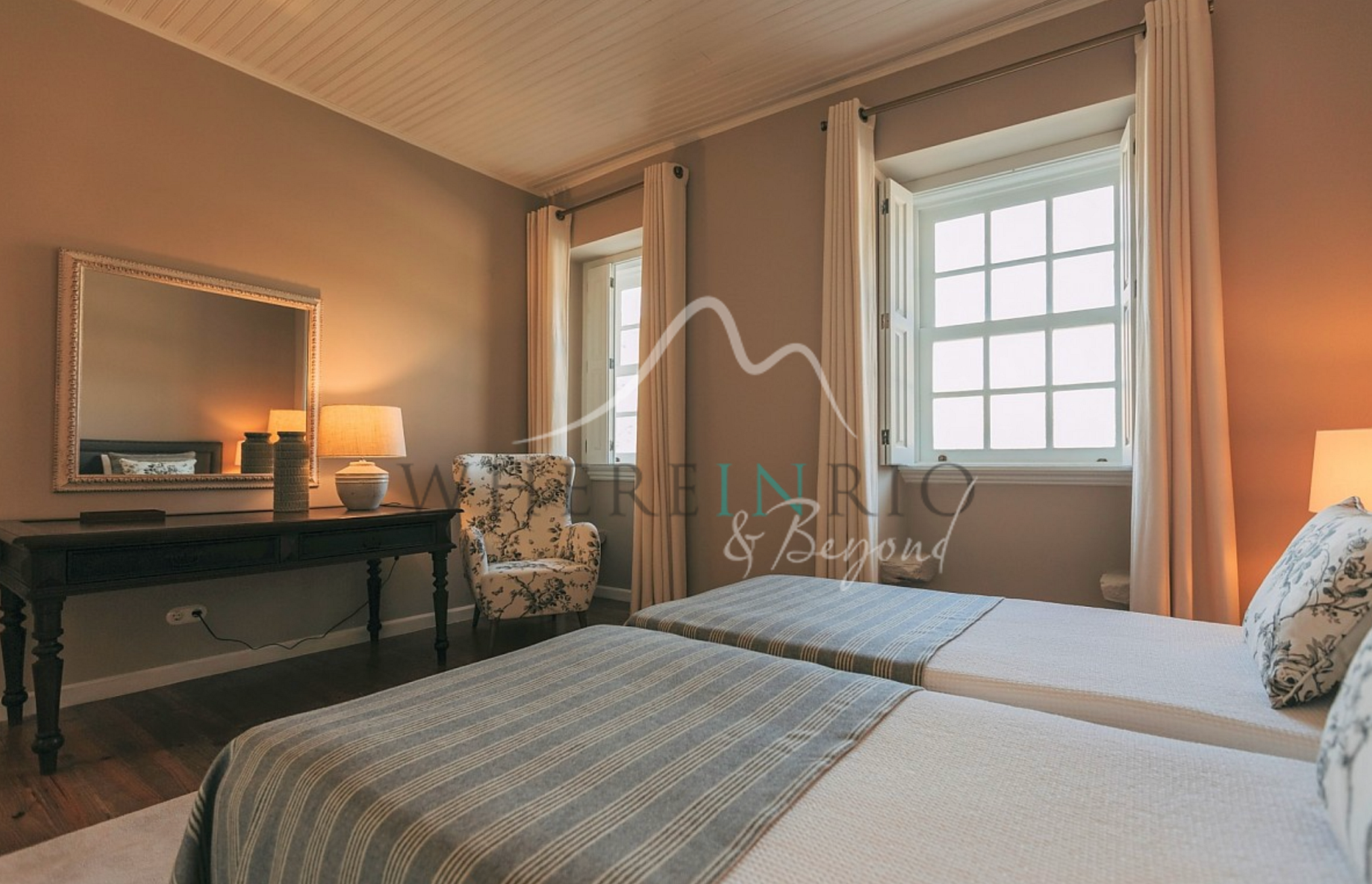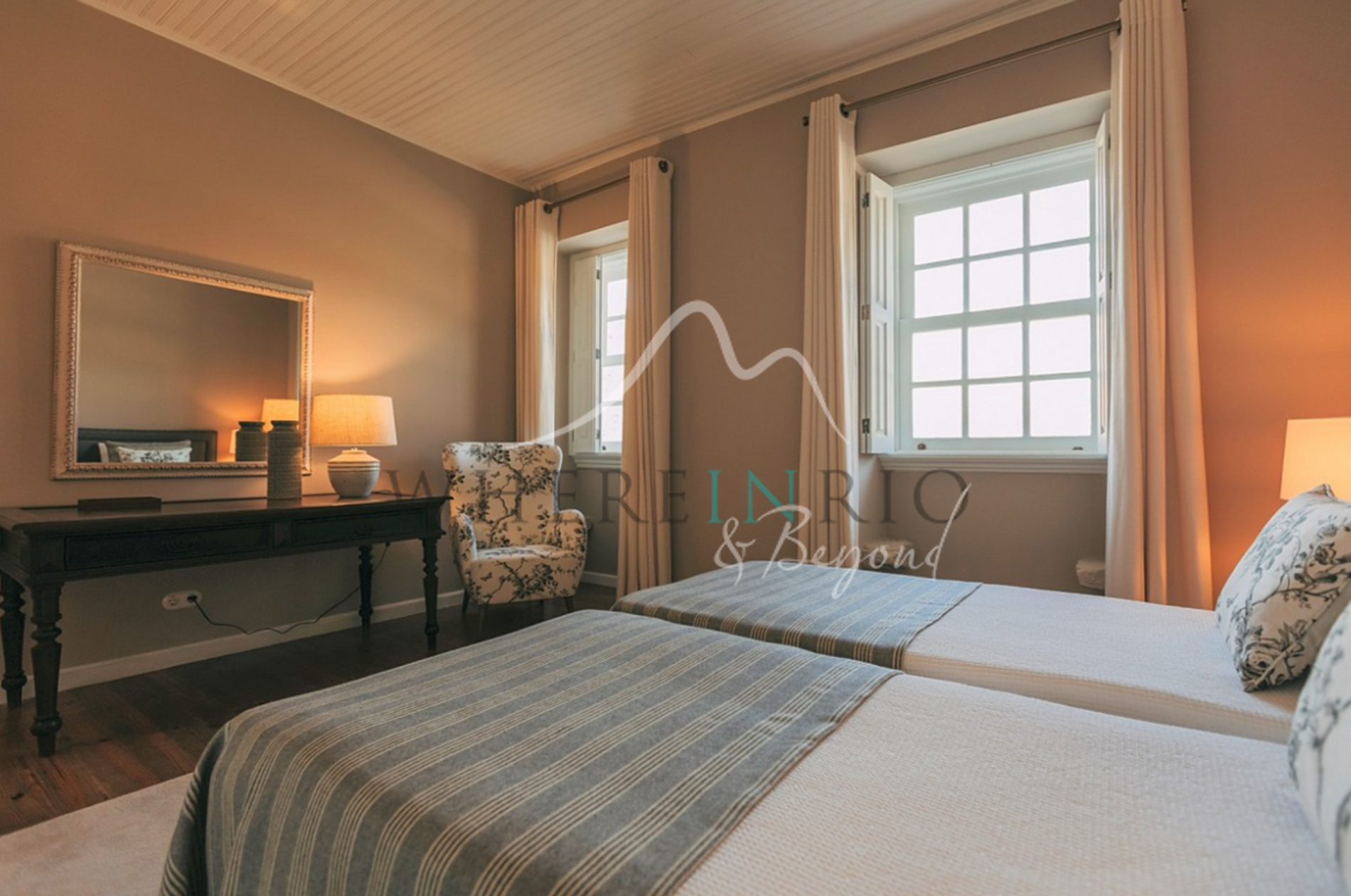 La Casa del Río Duoro cuenta con seis habitaciones dobles, cada una adornada con cubrecamas florales, alfombras ligeras y hermosos muebles de madera. Cada habitación ofrece un baño privado con lavabos dobles, espejos grandes y comodidades modernas para una estancia cómoda. Amplio espacio en armarios y grandes ventanales crean un ambiente luminoso y aireado. En el exterior, la piscina infinita con vistas al río ofrece un entorno memorable para tomar el sol entre exuberante vegetación. Las áreas de estar al aire libre ofrecen el lugar perfecto para disfrutar de comidas mientras se contempla los impresionantes paisajes naturales.