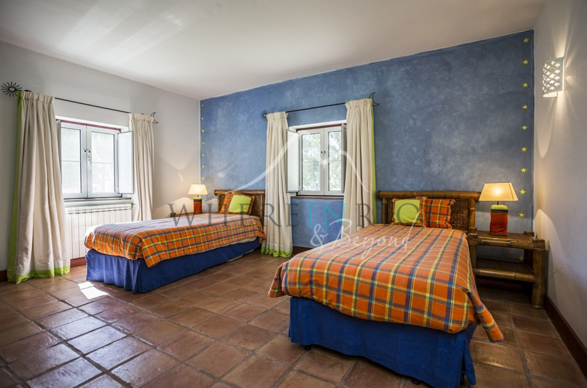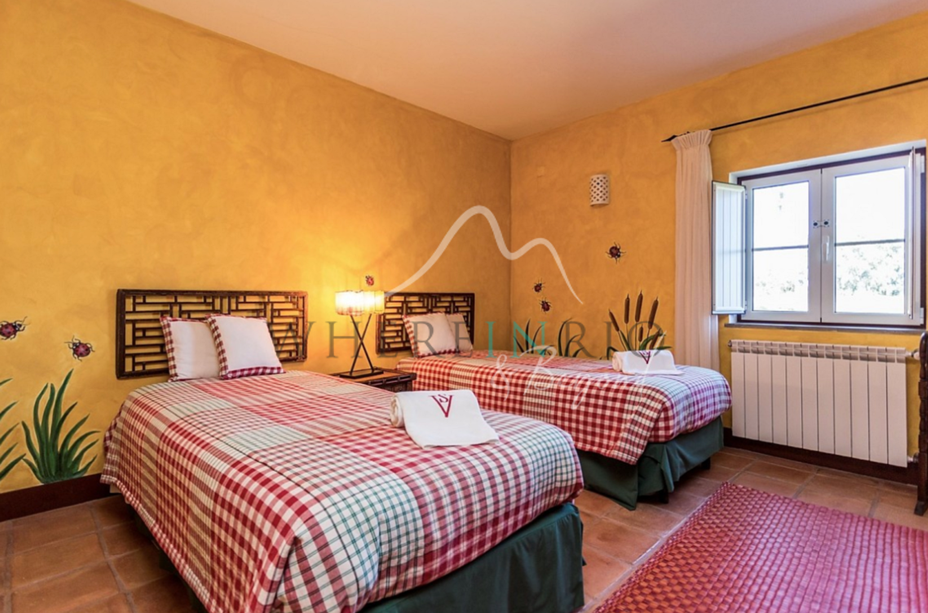 Hay 8 habitaciones espaciosas ubicadas en el lado más tranquilo de la casa, incluyendo una habitación principal y una habitación con camas gemelas con baños privados. Además, hay 3 baños compartidos que atienden a las otras 6 habitaciones, que incluyen 4 con camas gemelas y 2 habitaciones dobles. Se proporciona servicio de limpieza diario para su comodidad. Junto al salón hay una amplia sala de juegos, equipada con juegos de mesa, futbolín, un cómodo sofá y televisión para momentos más tranquilos. Mientras los niños se entretienen, los adultos pueden relajarse en el acogedor salón con sus dos salones o reunirse en la cocina, preparando comidas mientras disfrutan de un vaso de vino. Esta finca es un refugio de tranquilidad, perfecto para paseos tranquilos hasta el lago local, quizás incluso montando en el lomo de uno de los 8 dulces burros, una raza rara casi extinta pero amada y cuidada por los propietarios. Con vistas pintorescas de las colinas verdes desde las ventanas de las habitaciones, exuberantes céspedes afuera, áreas de comedor al aire libre y una reluciente piscina bañada por el sol, es un entorno idílico para que la familia y los amigos se reúnan, abrazando lo mejor de la naturaleza portuguesa.