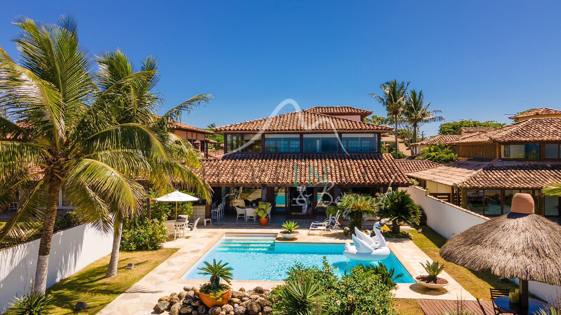 Maravillosa villa de lujo de 450 m² en el corazón de Búzios con 5 suites, 7 baños, piscina privada y vistas panorámicas al mar frente a la playa de Geribá.