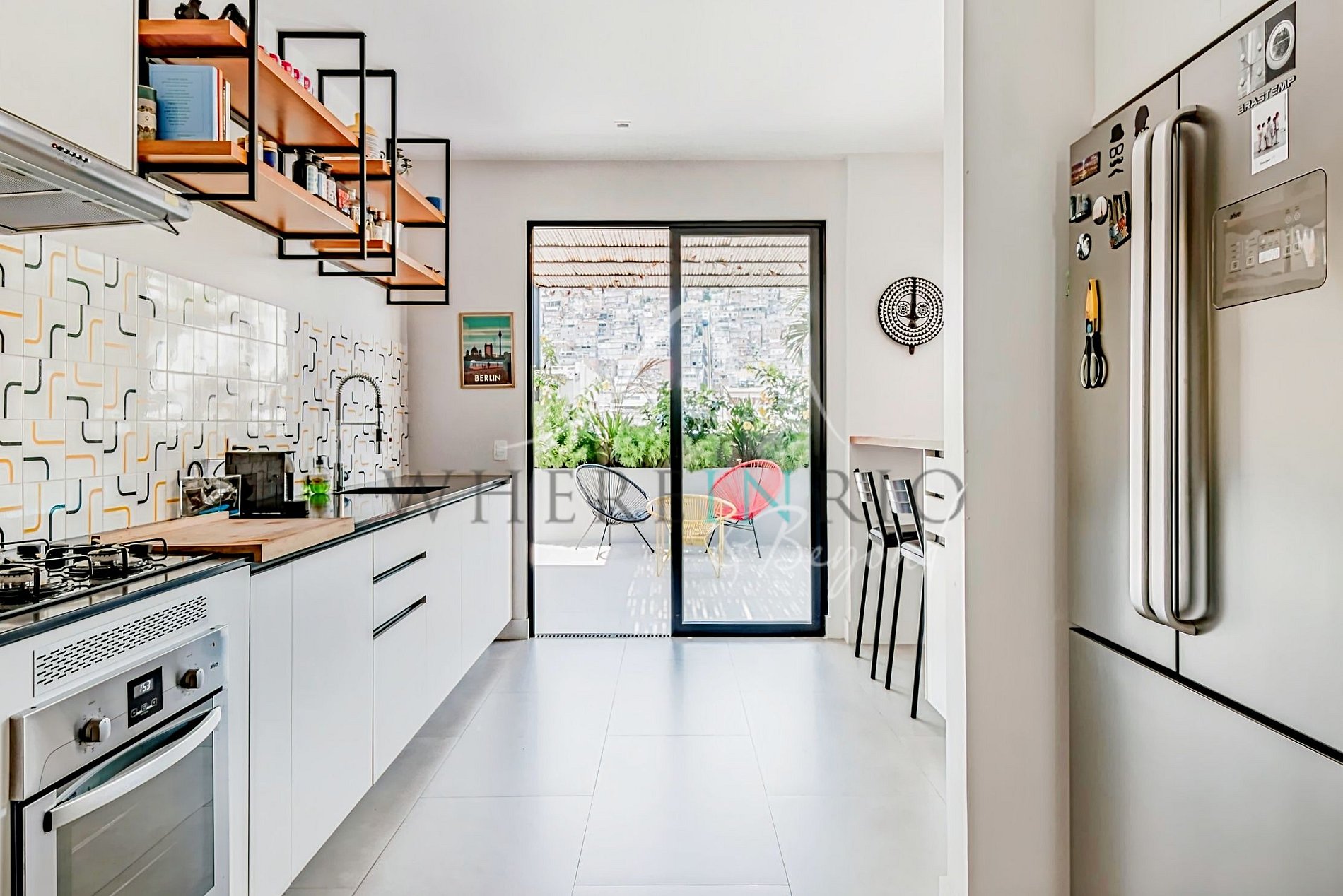 Moderno ático de lujo entre Ipanema y Copacabana, con tres dormitorios, dos baños y terraza privada con piscina.
