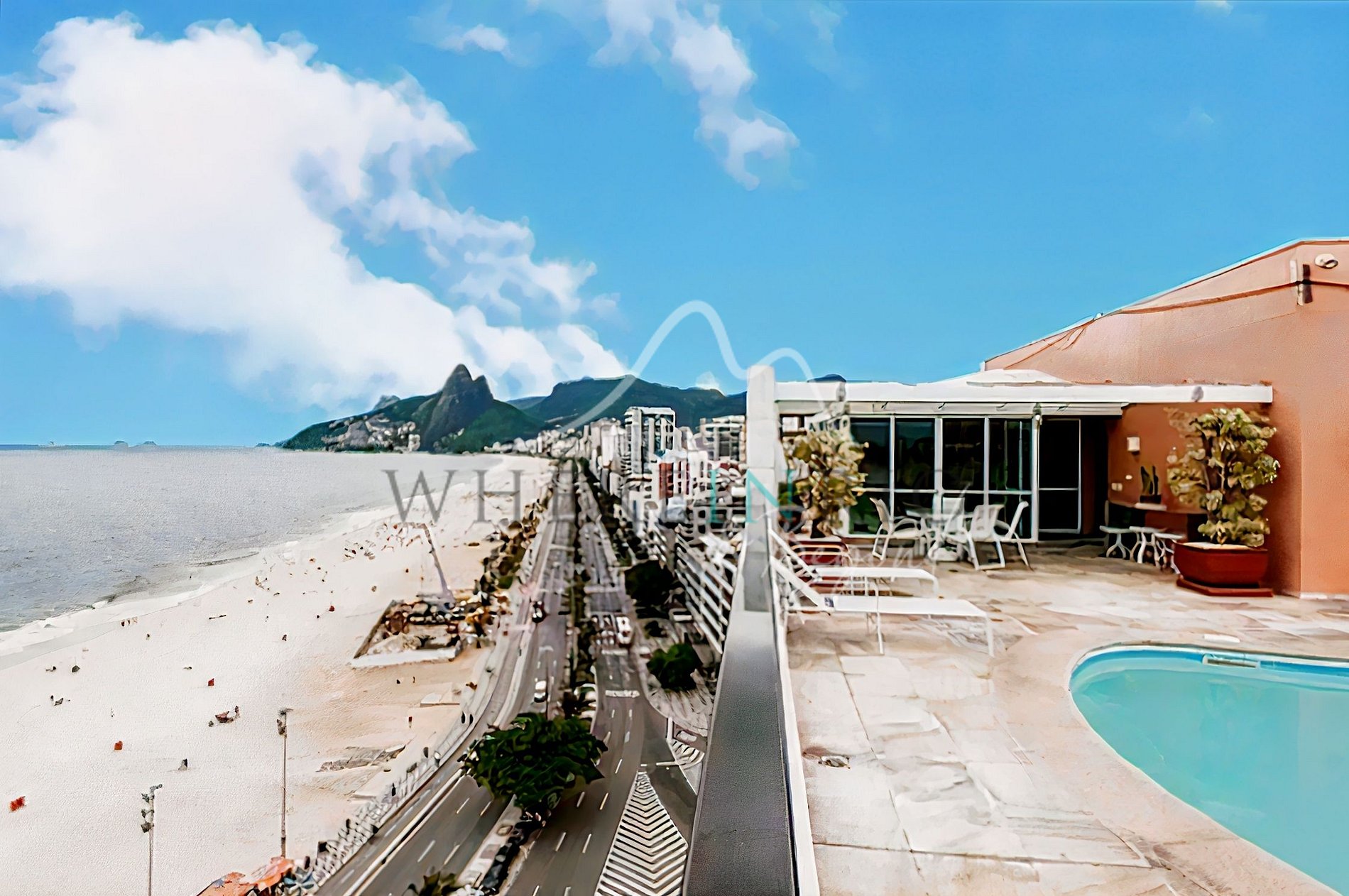 Este lujoso piso en alquiler está situado justo en frente de la playa de Ipanema, con una vista panorámica desde Arpoador hasta Leblon.
