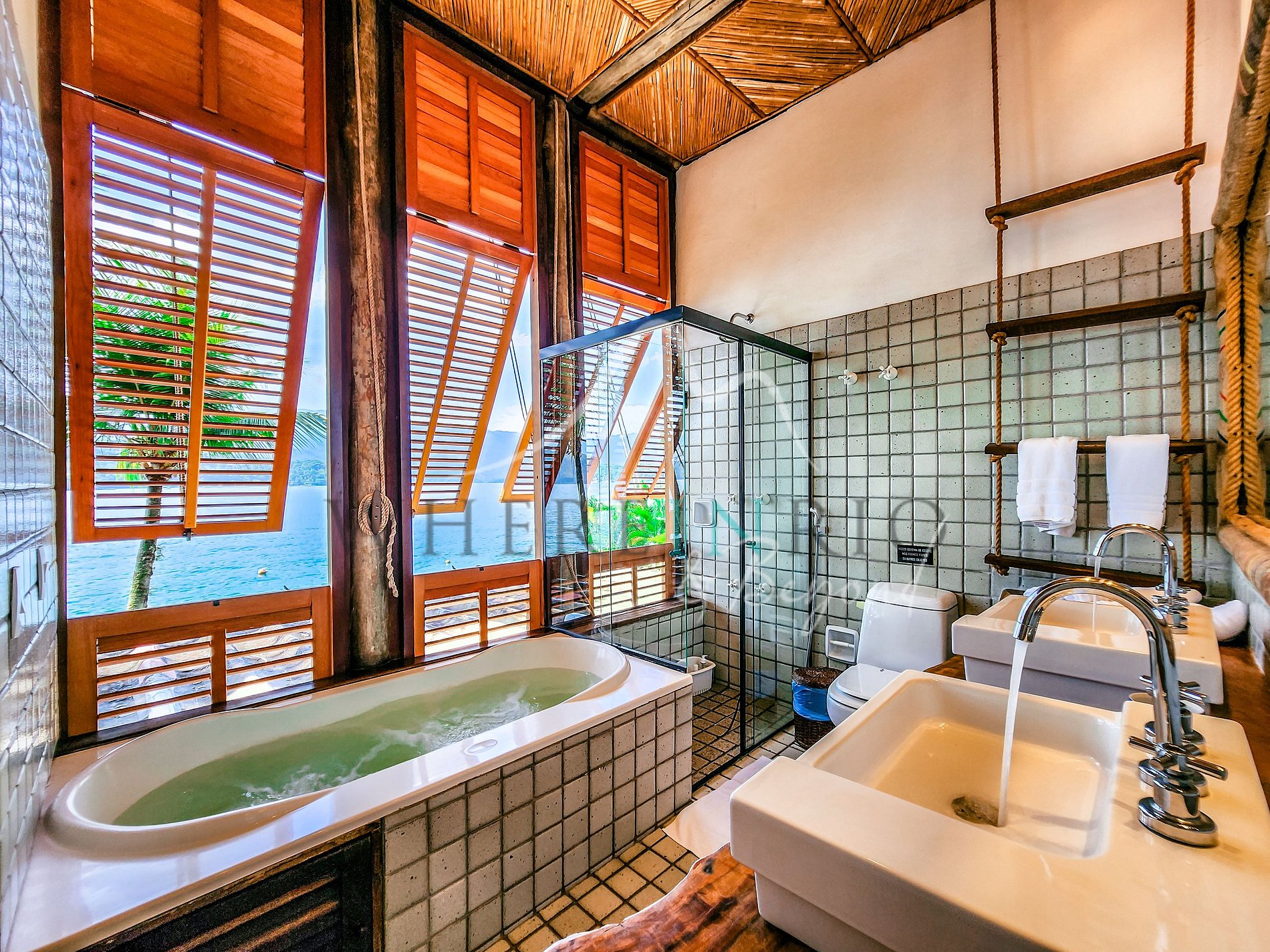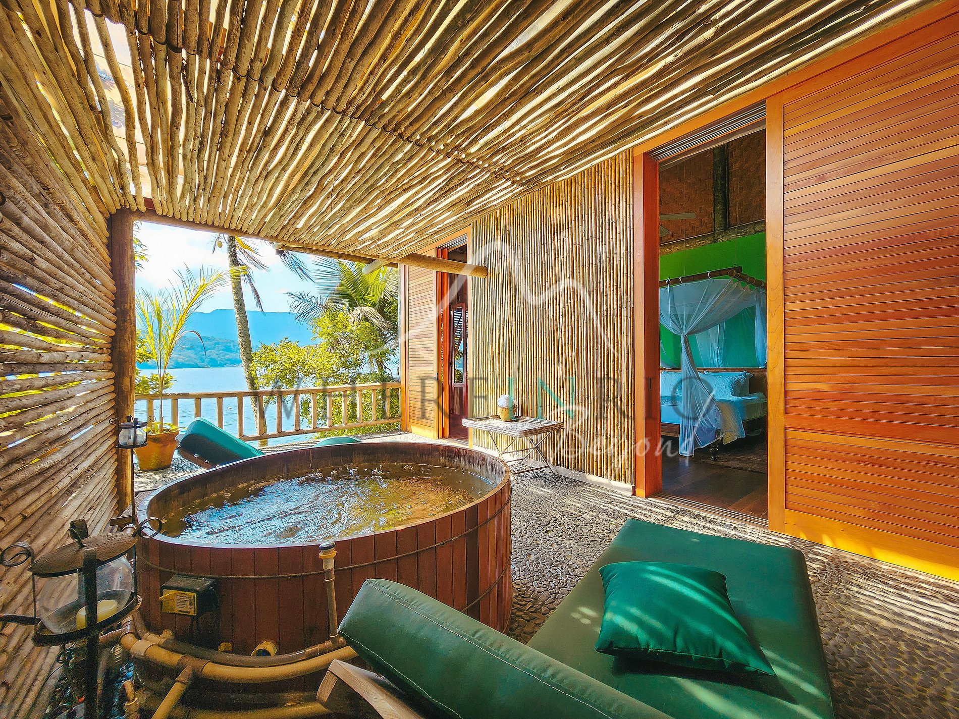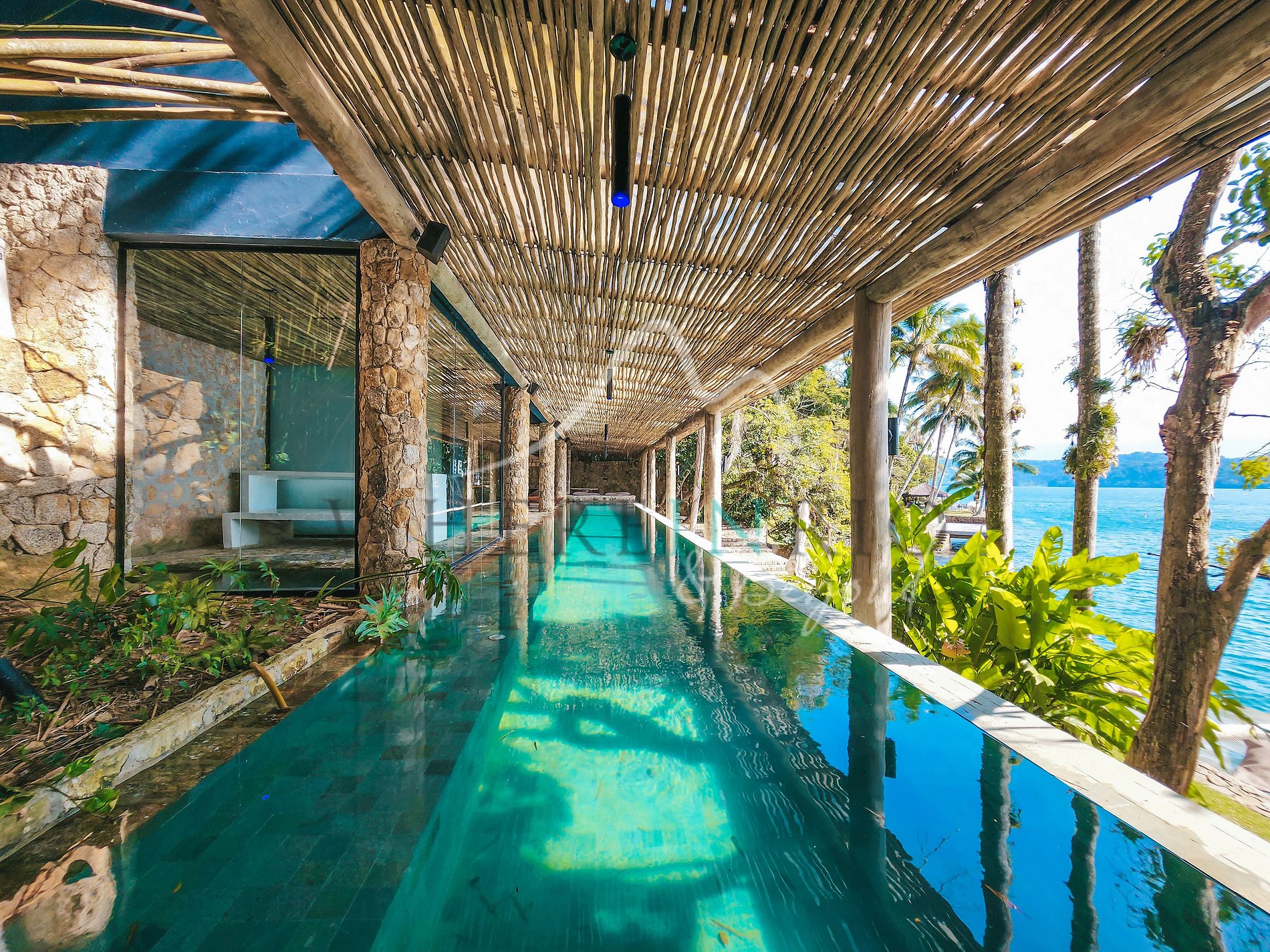La propiedad combina confort, privacidad y diseño natural con piedra, madera y bambú. Wi-Fi disponible en toda la isla. El condominio de lujo ofrece cancha de tenis, campo de fútbol y gimnasio. Acceso únicamente por barco o helicóptero para garantizar privacidad.