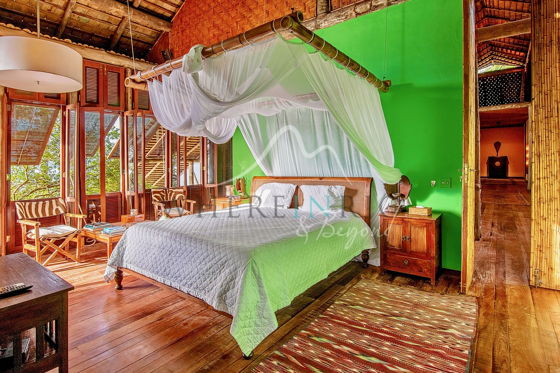 La propiedad combina confort, privacidad y diseño natural con piedra, madera y bambú. Wi-Fi disponible en toda la isla. El condominio de lujo ofrece cancha de tenis, campo de fútbol y gimnasio. Acceso únicamente por barco o helicóptero para garantizar privacidad.