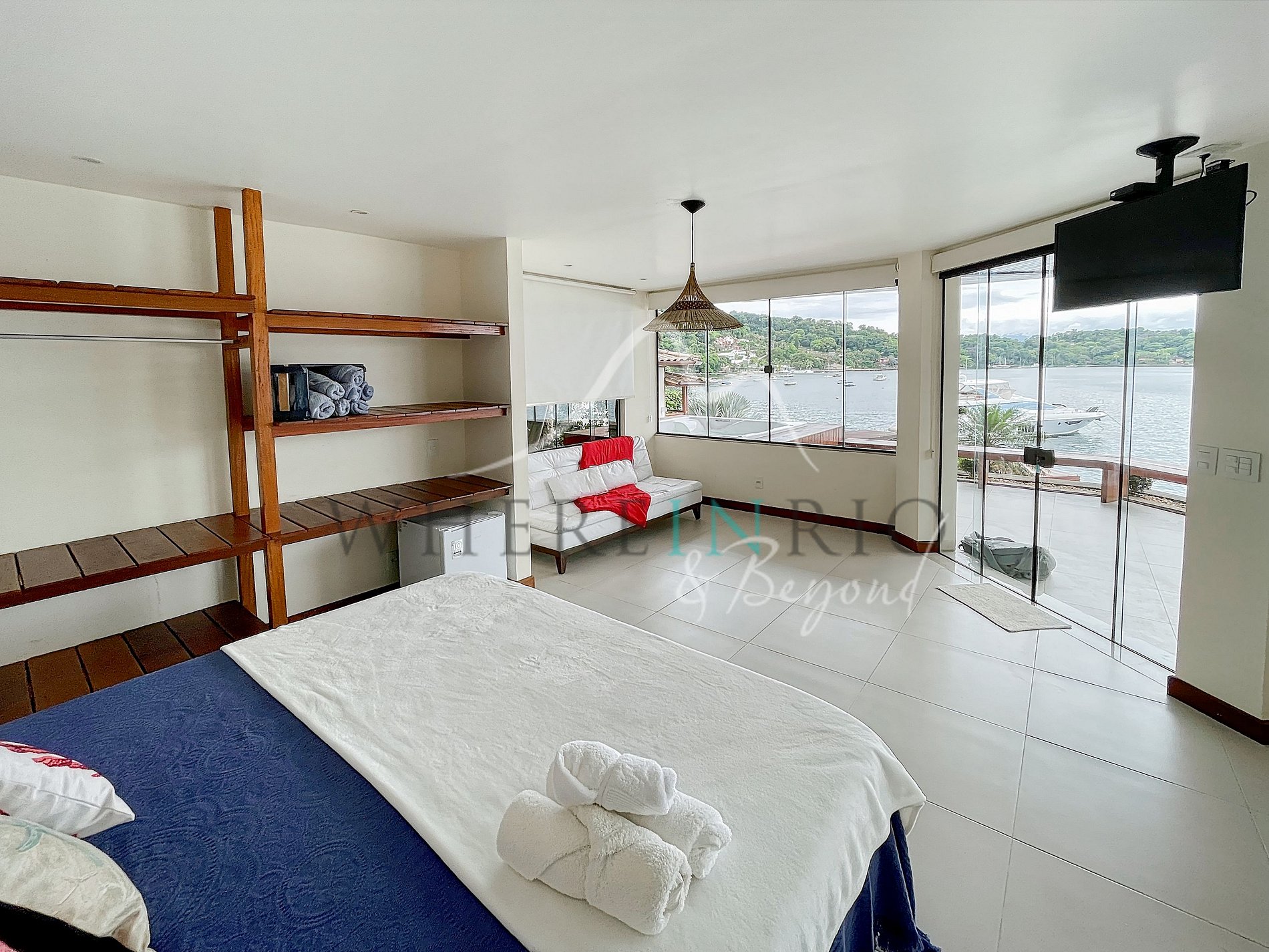 Hermosa casa de lujo frente a la isla de Gipóia, con cinco suites, piscina privada, sauna, área gourmet y vistas espectaculares al mar.