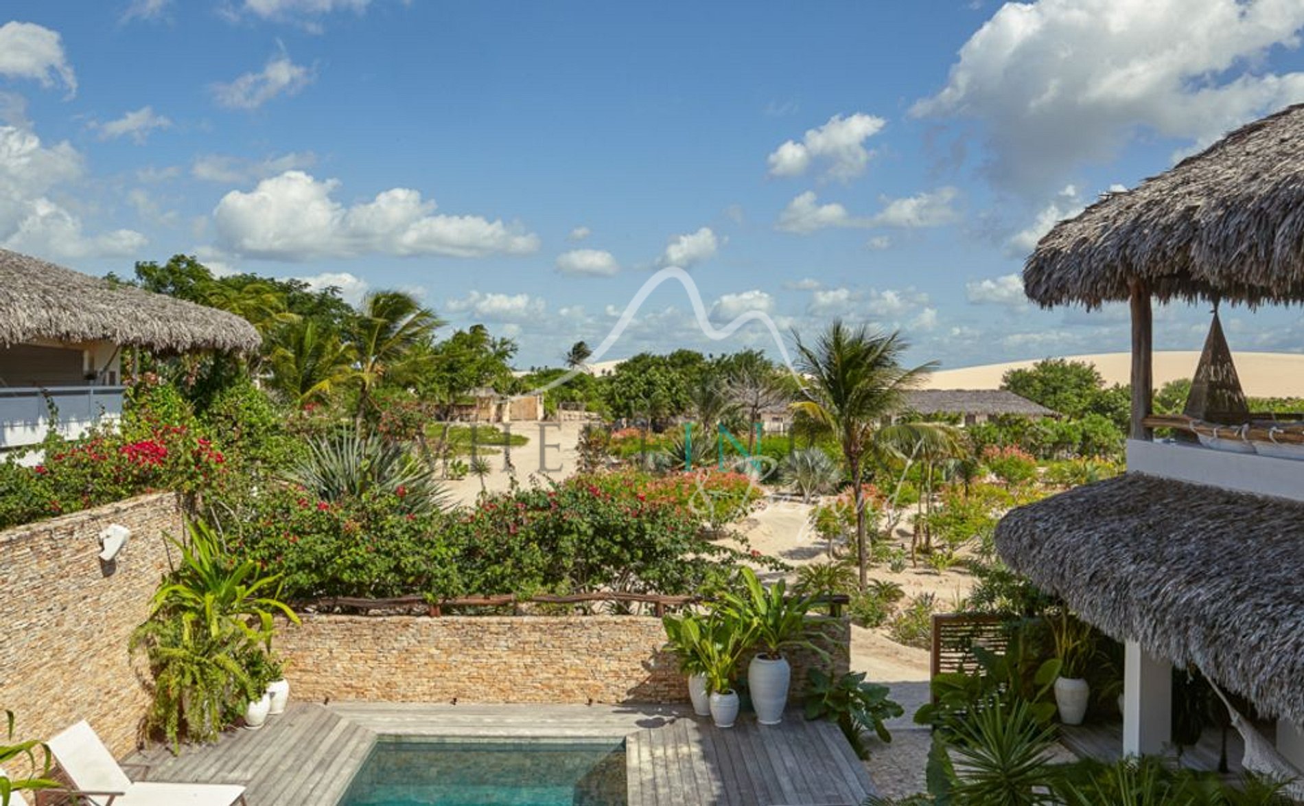 Esta villa es un refugio de lujo y sofisticación en Jericoacoara, perfectamente integrada con su entorno natural único. Frente a las impresionantes dunas del Parque Nacional y a solo 5 minutos del centro animado, cuenta con 5 alojamientos elegantemente decorados, piscina color jade y cocina totalmente equipada, ofreciendo privacidad, confort y tranquilidad.