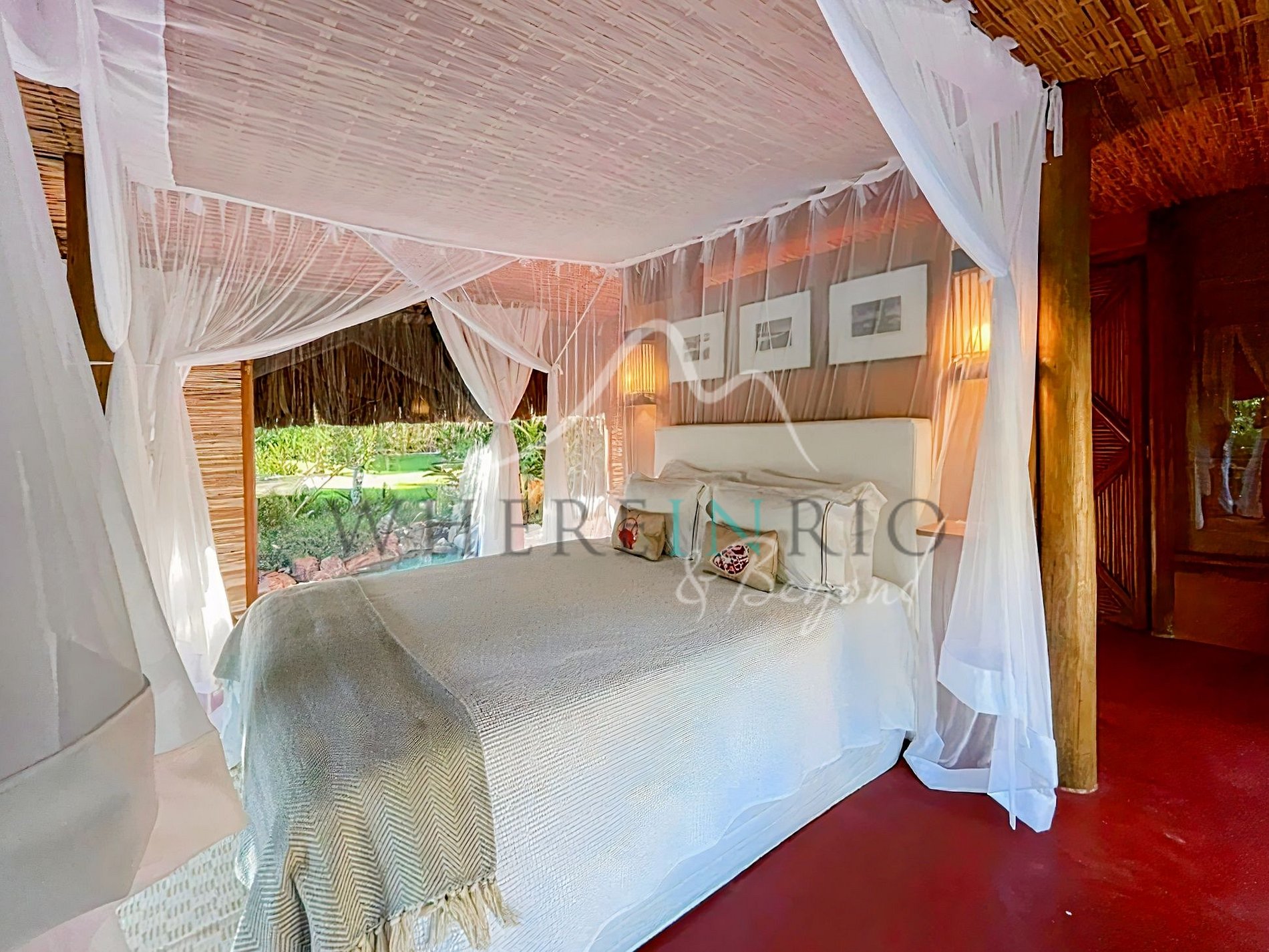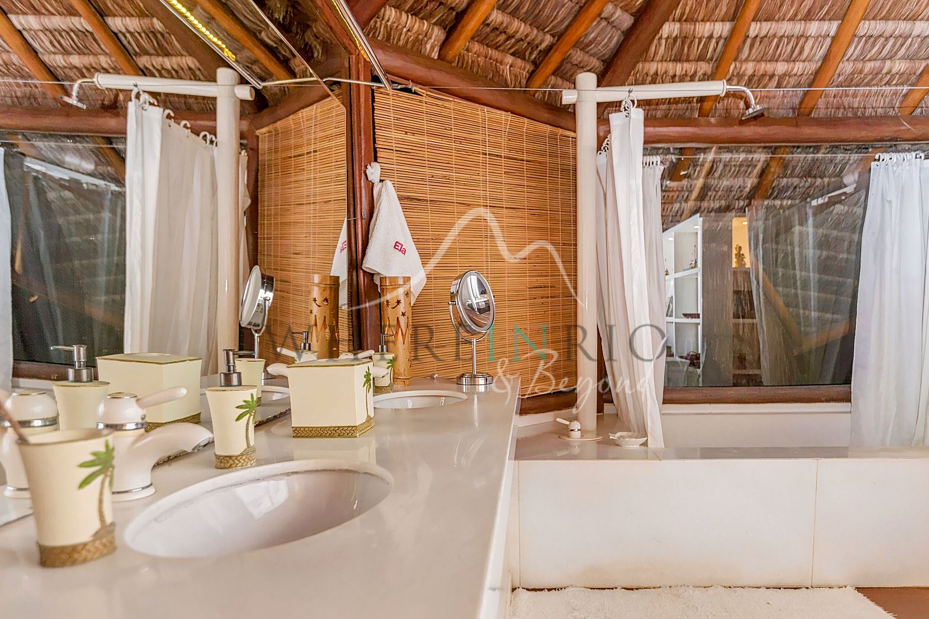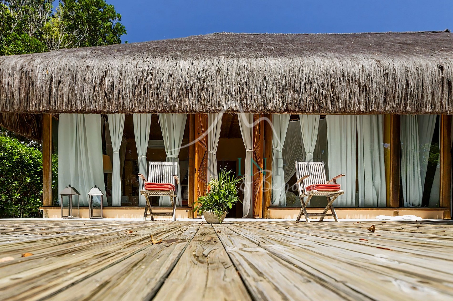 Casa amplia y elegante en Trancoso, con 10 suites distribuidas en 4 bungalows, terraza privada frente al mar y acceso seguro a la playa. Hasta 31 huéspedes.