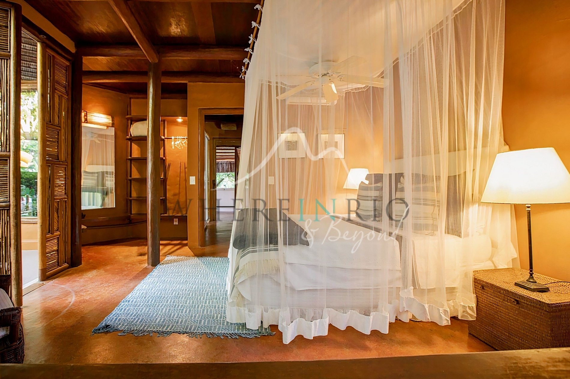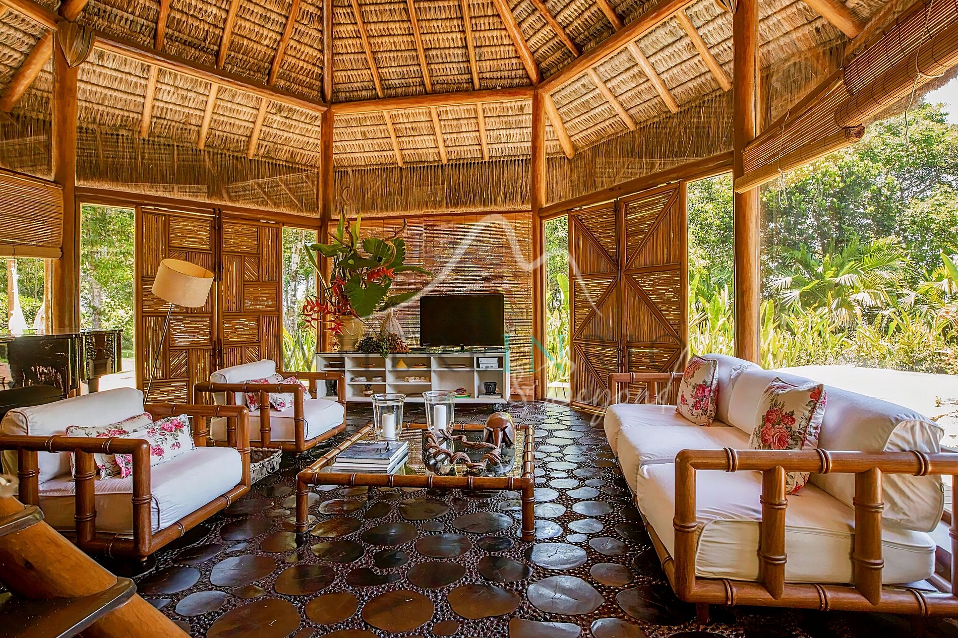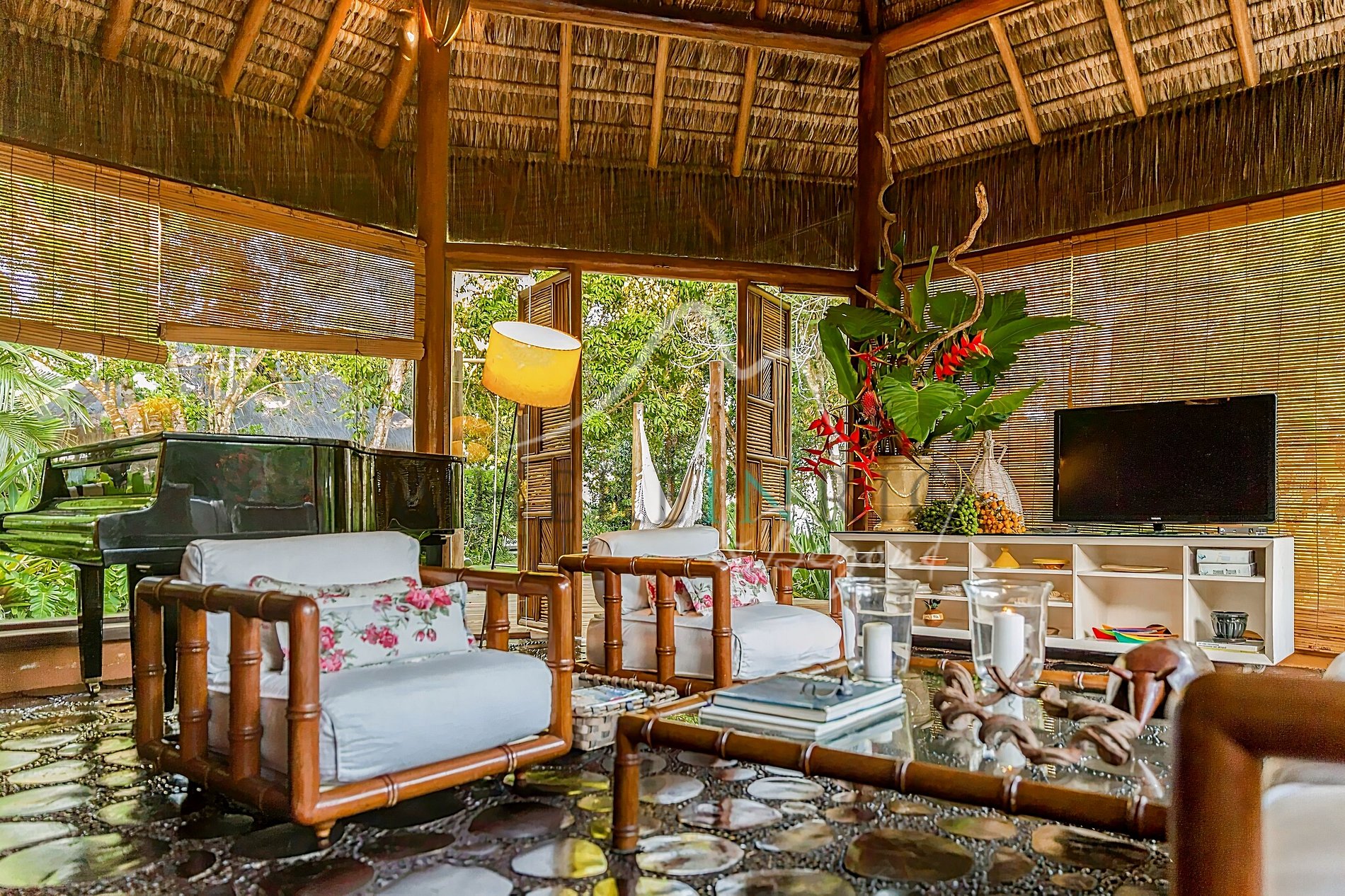 Casa amplia y elegante en Trancoso, con 10 suites distribuidas en 4 bungalows, terraza privada frente al mar y acceso seguro a la playa. Hasta 31 huéspedes.
