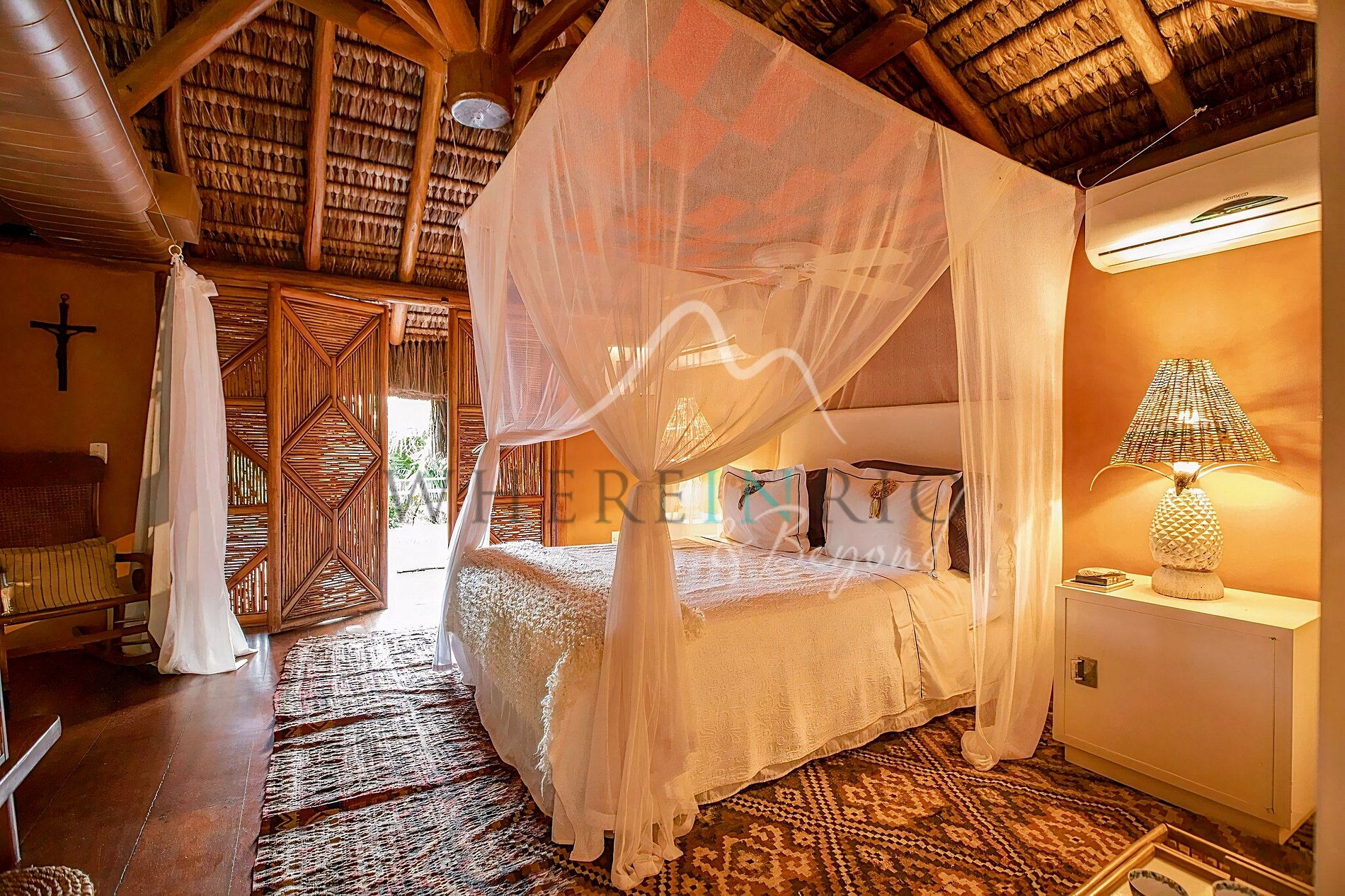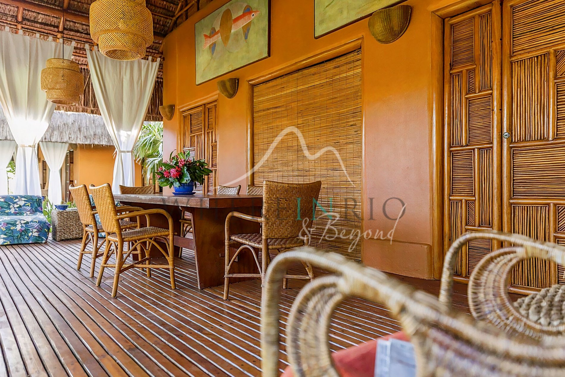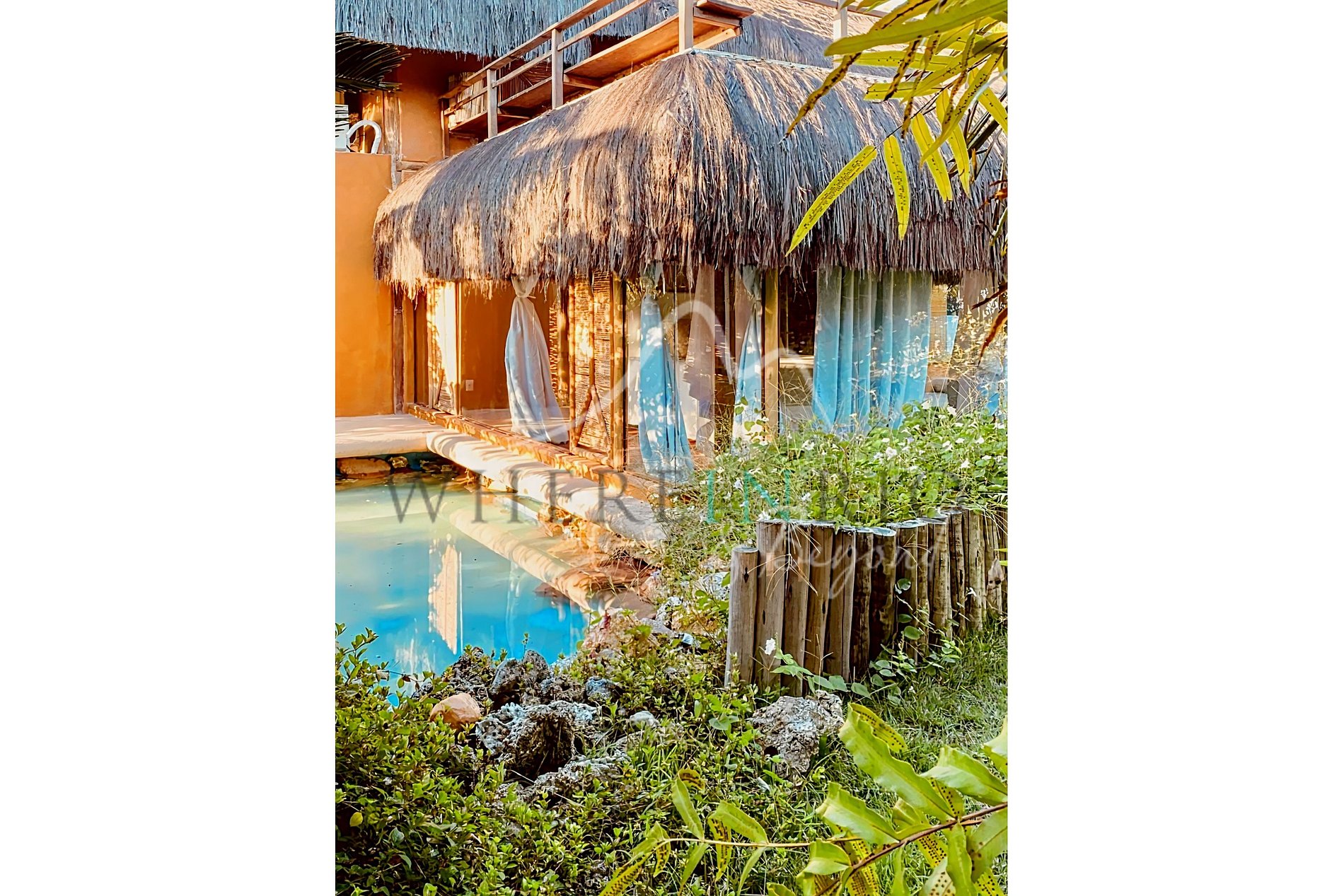Acceso exclusivo a los 4 bungalows, jardín y terraza privada frente al mar. La propiedad está en zona cerrada con acceso seguro a la playa.