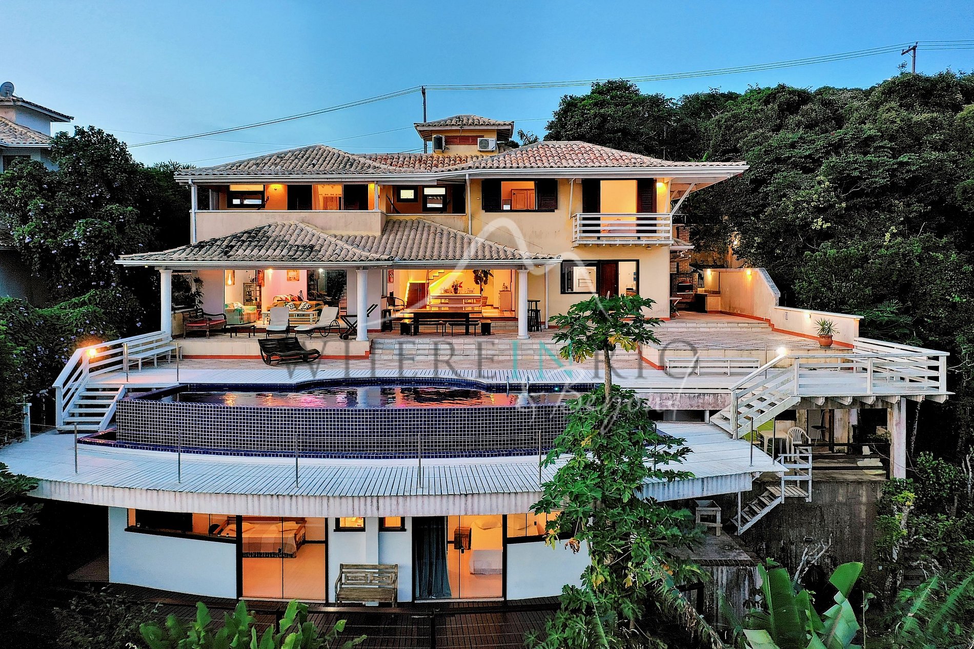 Casa de lujo con piscina privada para alquiler vacacional en Búzios. Ubicada en el punto más alto de la playa de Ferradura con impresionantes vistas panorámicas de la península de Búzios.