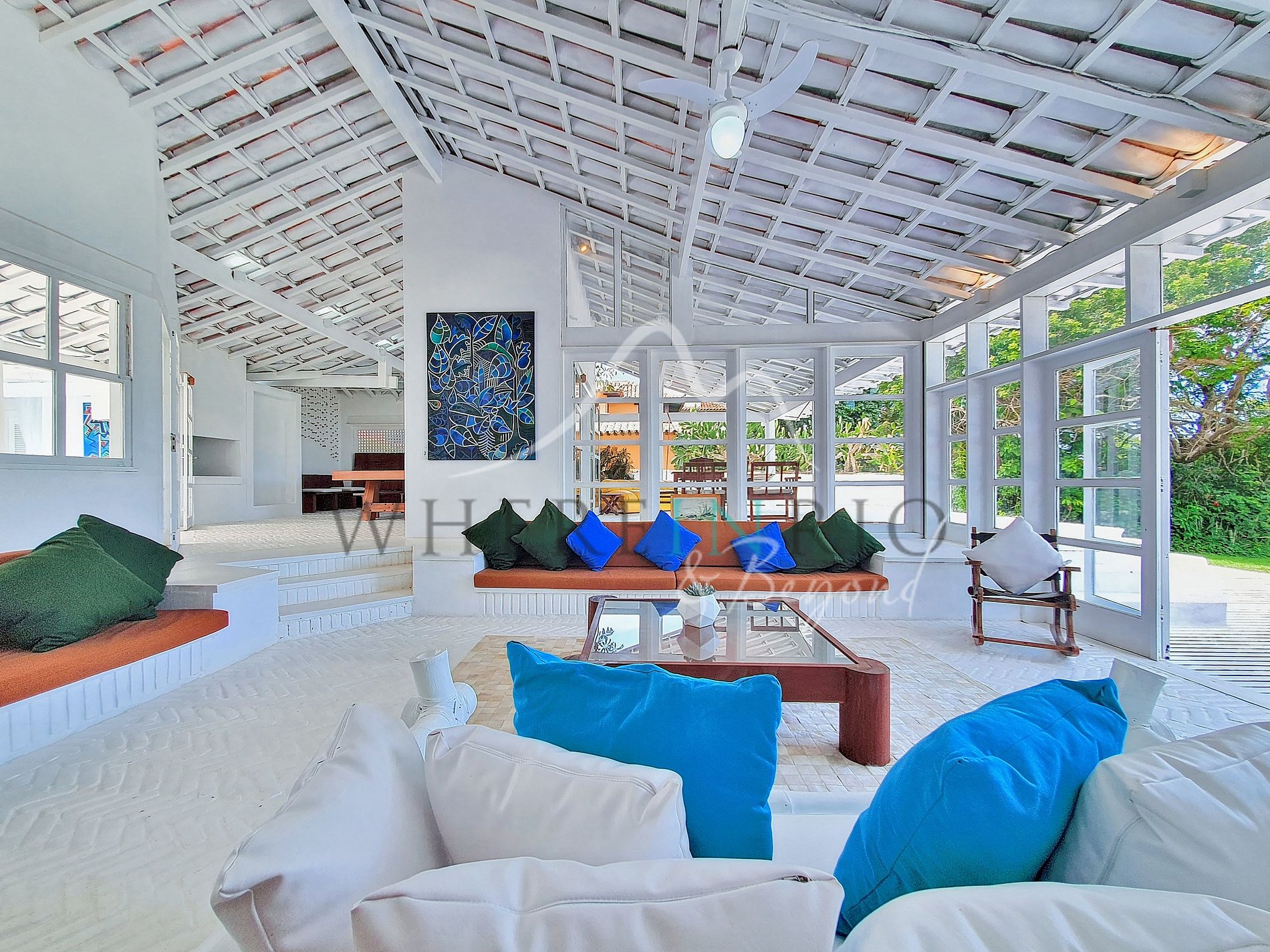 Diseñada por el reconocido arquitecto Hélio Pelegrino, esta casa de 500 m² ofrece acceso directo a la playa y vistas al mar desde todos los ambientes. Amplio salón que se abre a la piscina, veranda gourmet con barbacoa, comedor, cinco habitaciones (tres suites), baños de alta gama y decoración clara y sofisticada.