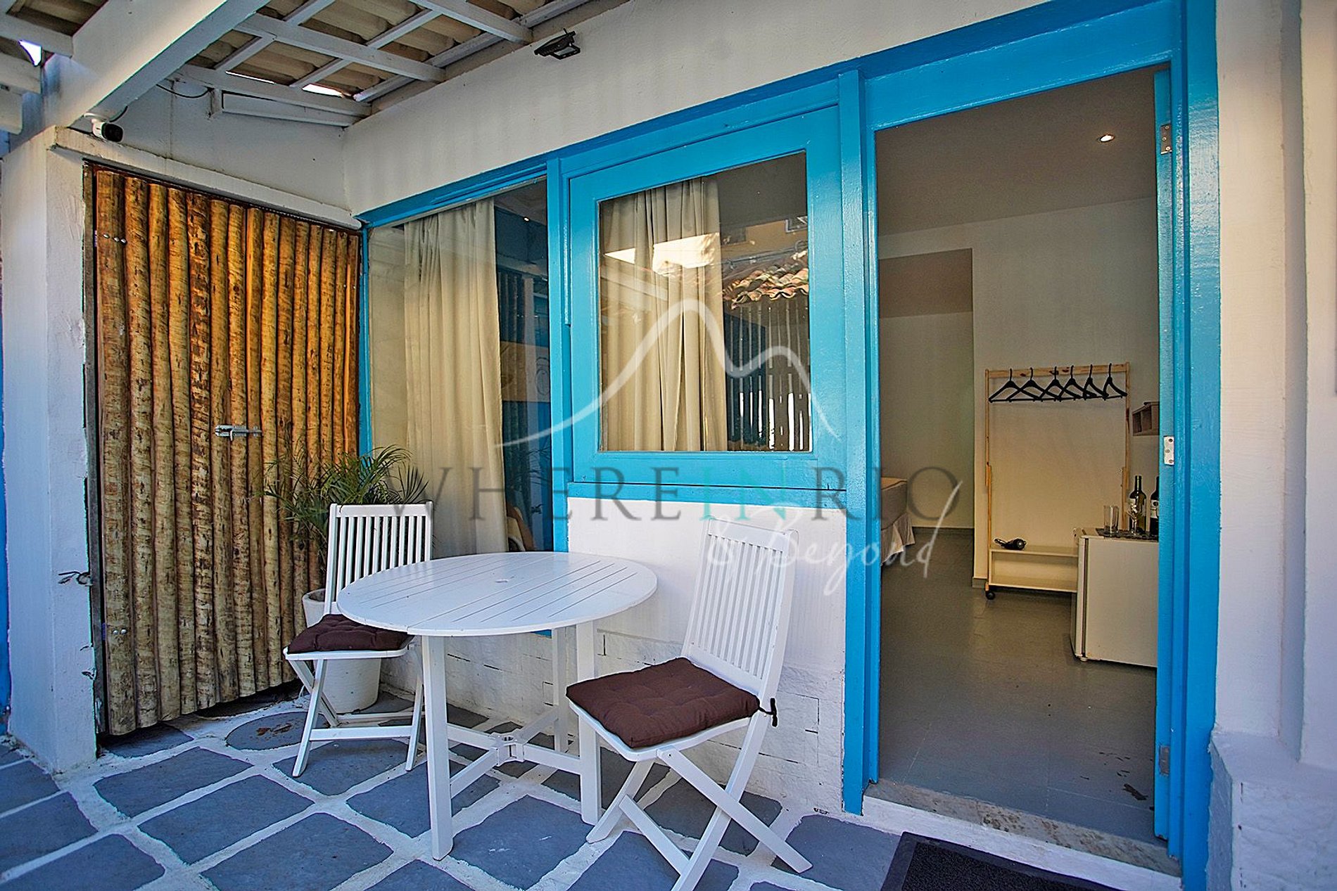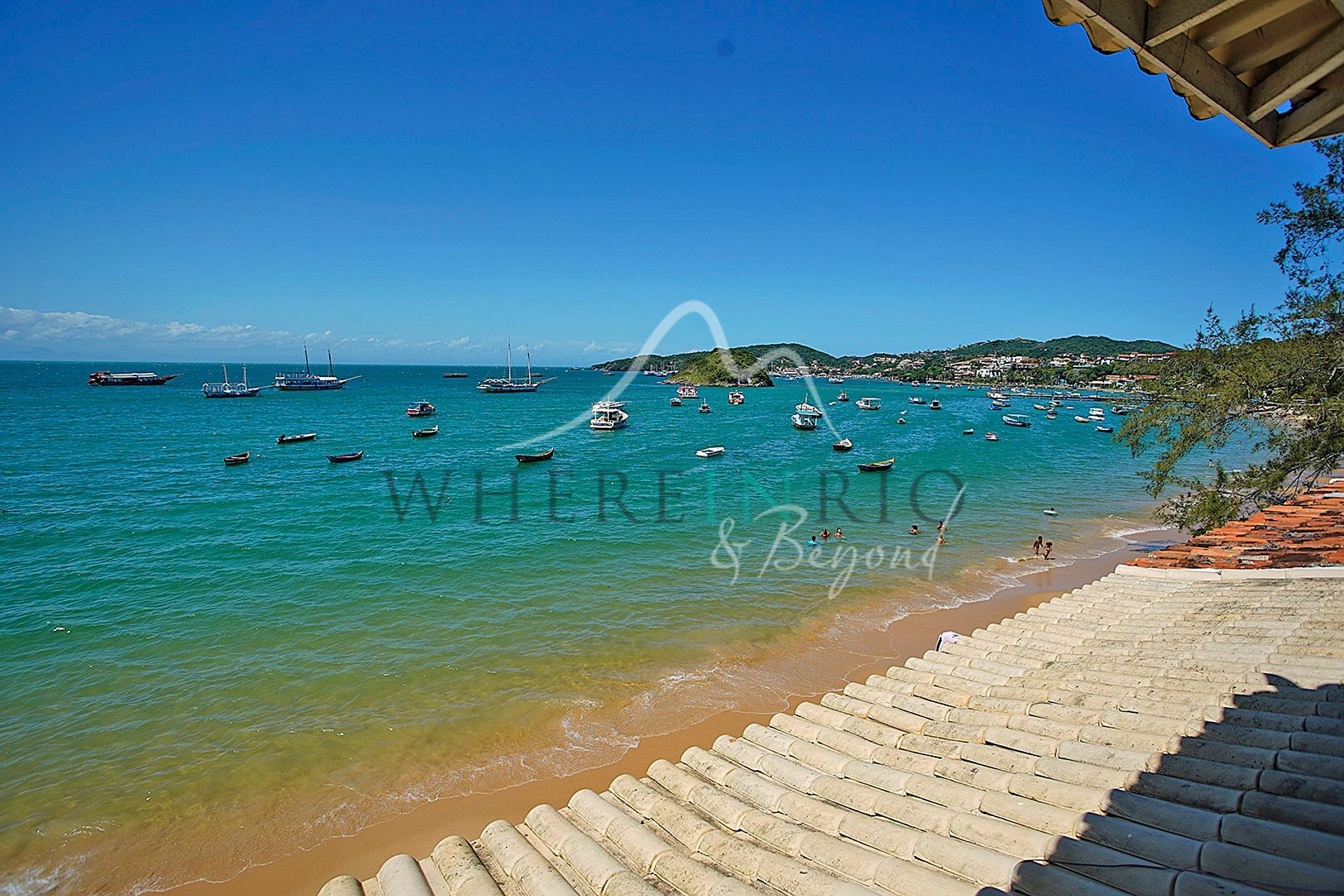 Casa Azul, casa de lujo de estilo griego recientemente renovada en el corazón de Búzios, frente a la playa de Canto. Diez suites con vista al mar, bar, cocina equipada y personal propio—ideal para alquiler de lujo.