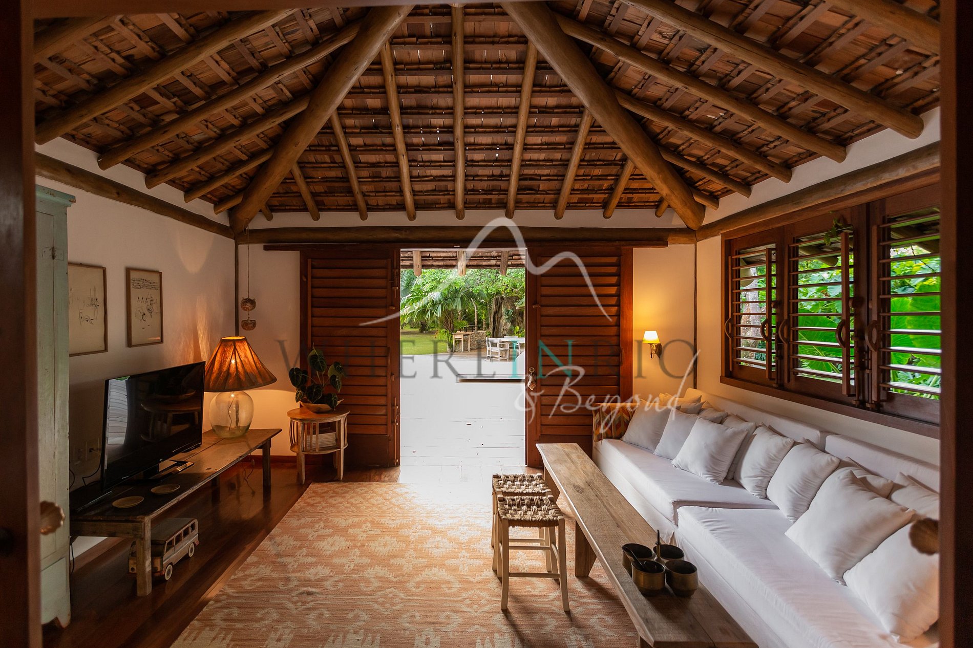 Esta espectacular casa de lujo en Altos de Trancoso se encuentra en un terreno tropical de 5.000 m² con piscina, sauna, cocina/bar exterior, sala de juegos, sala infantil y 7 suites (incluyendo un bungalow independiente). Amplia, decorada con estilo y con servicio completo. A sólo 10 minutos de la playa y del Quadrado.