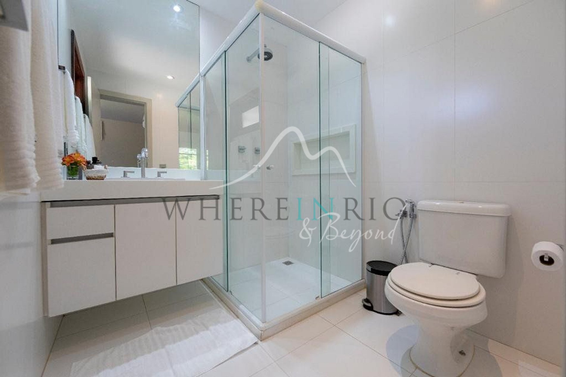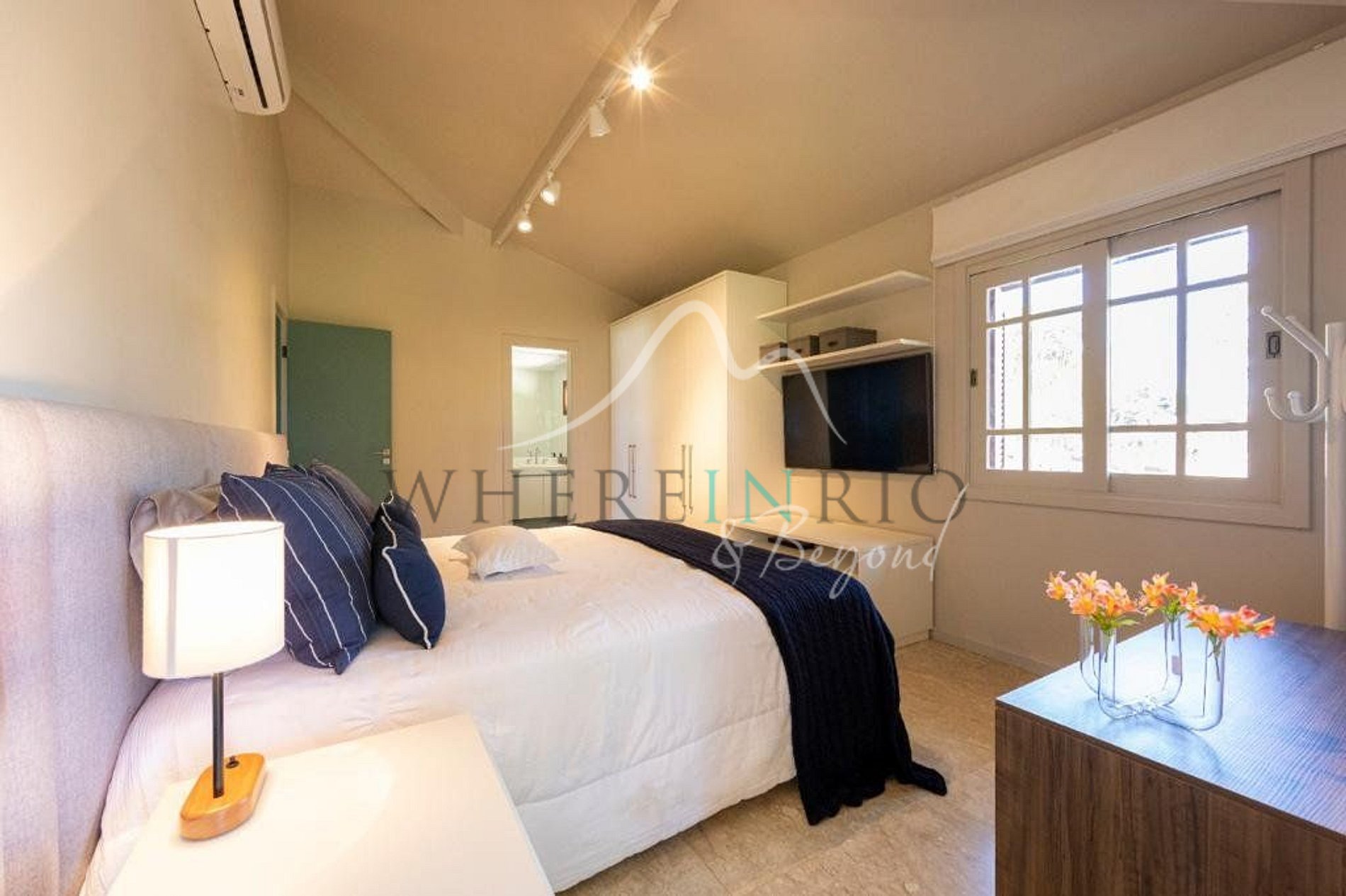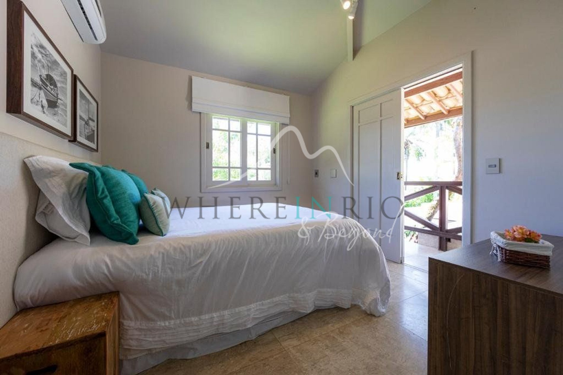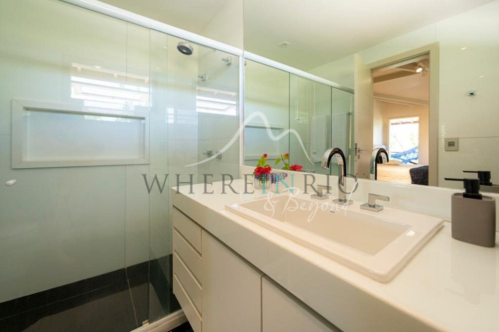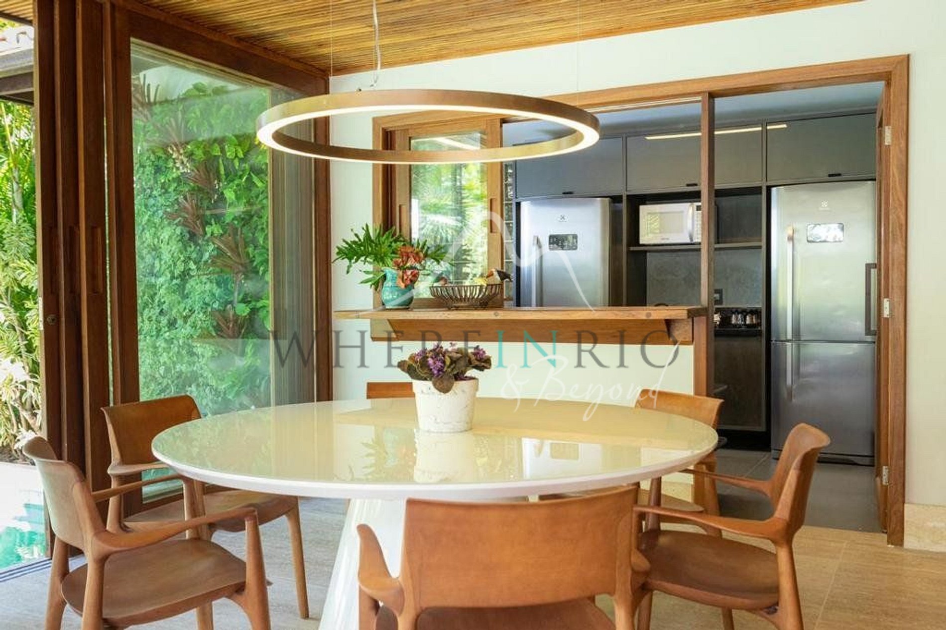 Al entrar en la casa, un gran y espacioso salón dividida en dos ambientes: living y sala de televisión. Junto a una gran mesa de billar para su entretenimiento. Con muebles firmados por Sergio Rodrigues y Jader Almeida, la elegancia y el estilo están garantizados en sus vacaciones. El salón da acceso a la piscina, a través de grandes puertas correderas, se integrando la zona de ocio. El comedor está junto a la cocina, muy bien equipada.