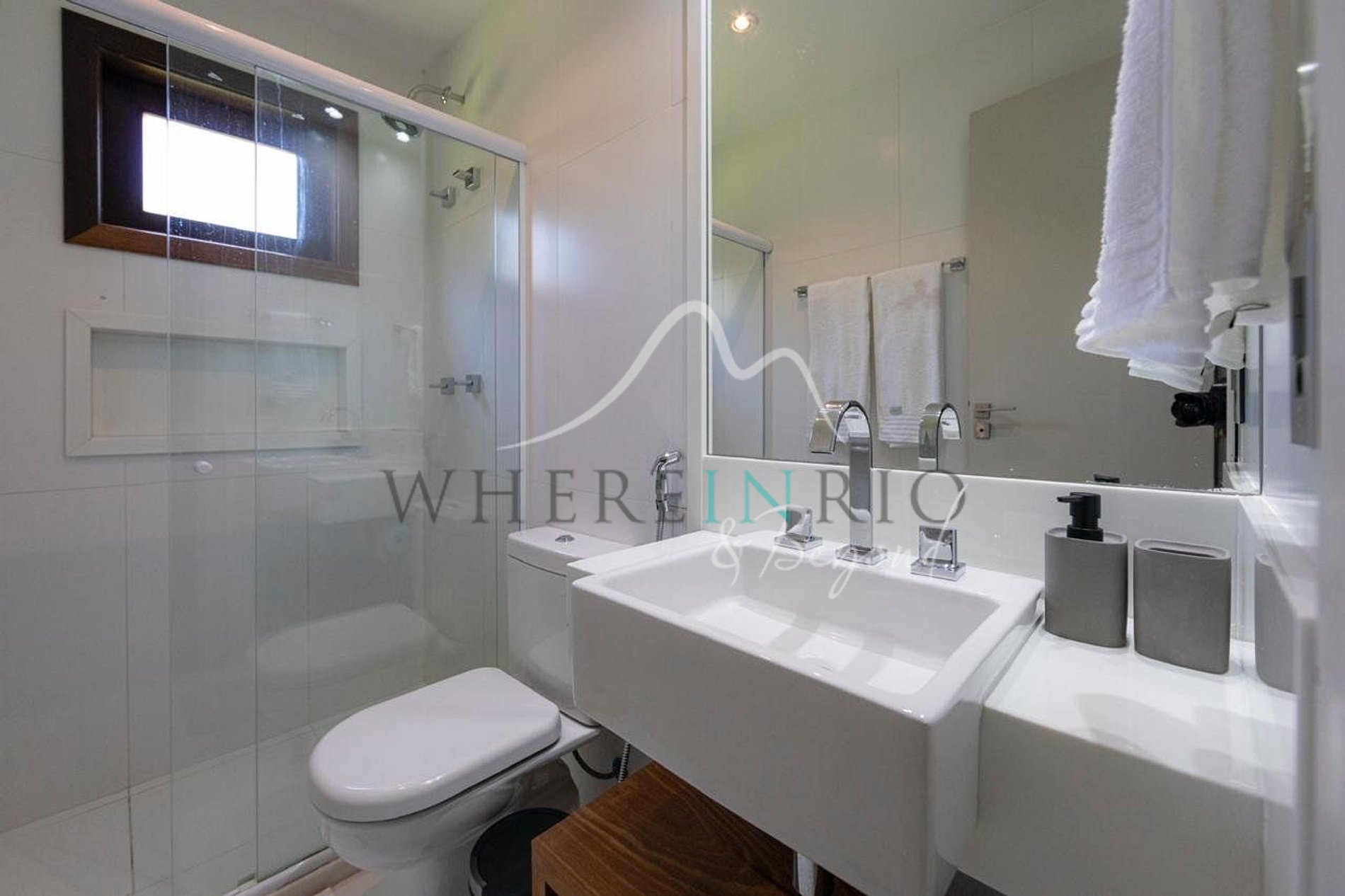 Al entrar en la casa, un gran y espacioso salón dividida en dos ambientes: living y sala de televisión. Junto a una gran mesa de billar para su entretenimiento. Con muebles firmados por Sergio Rodrigues y Jader Almeida, la elegancia y el estilo están garantizados en sus vacaciones. El salón da acceso a la piscina, a través de grandes puertas correderas, se integrando la zona de ocio. El comedor está junto a la cocina, muy bien equipada.