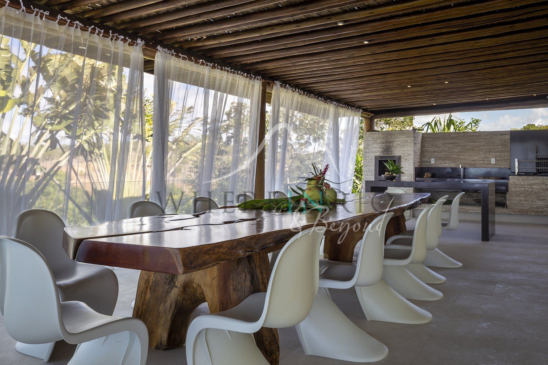 Esta villa de 7 dormitorios se encuentra en la ciudad de Arraial d'Ajuda, al sur de Bahía, en la cima del acantilado de Mucugê. Es una casa moderna y contemporánea de estilo mediterráneo.