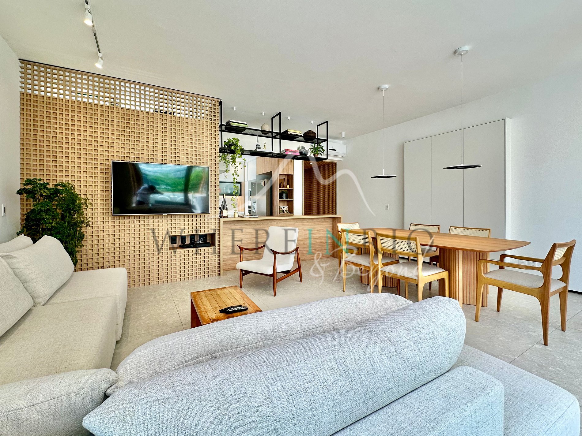 El apartamento cuenta con un amplio salón y una cocina totalmente equipada conectados a un balcón retráctil con una encantadora ducha exterior. Los paneles de muxarabi aportan elegancia y practicidad al ocultar los armarios y la lavandería. Los muebles de madera clara y los detalles en metal negro crean una estética urbana y sofisticada. El porcelanato gris claro unifica los espacios, desde el salón hasta el balcón gourmet, brindando una atmósfera cálida y coherente. El techo de vidrio con cortinas solares permite controlar la luz natural, ofreciendo el máximo confort. Una auténtica joya en Ipanema.