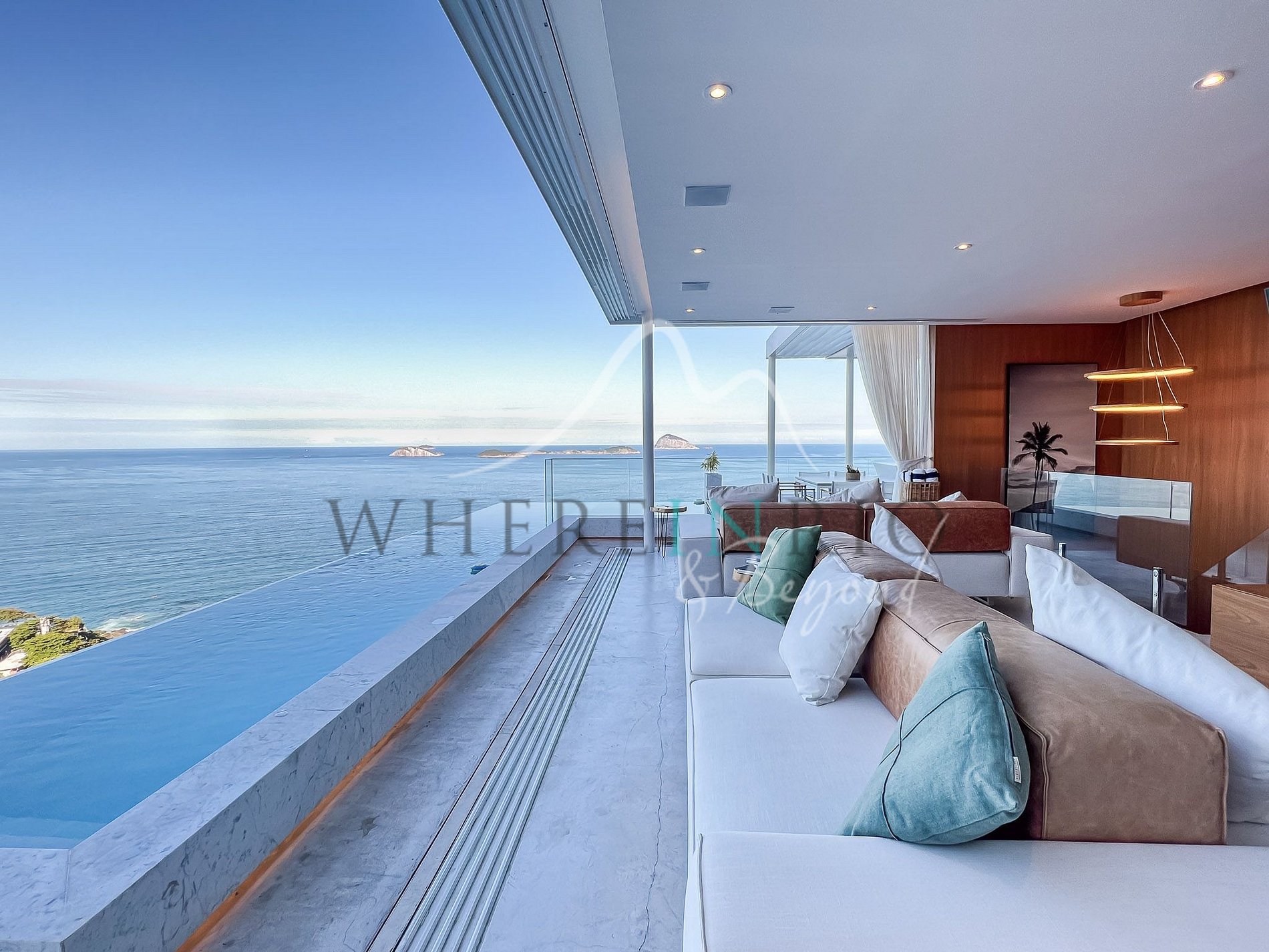 Ático dúplex de lujo con piscina infinita, cuatro suites y una vista panorámica espectacular del mar, las montañas y las playas de Río de Janeiro. Disponible para alquiler vacacional.