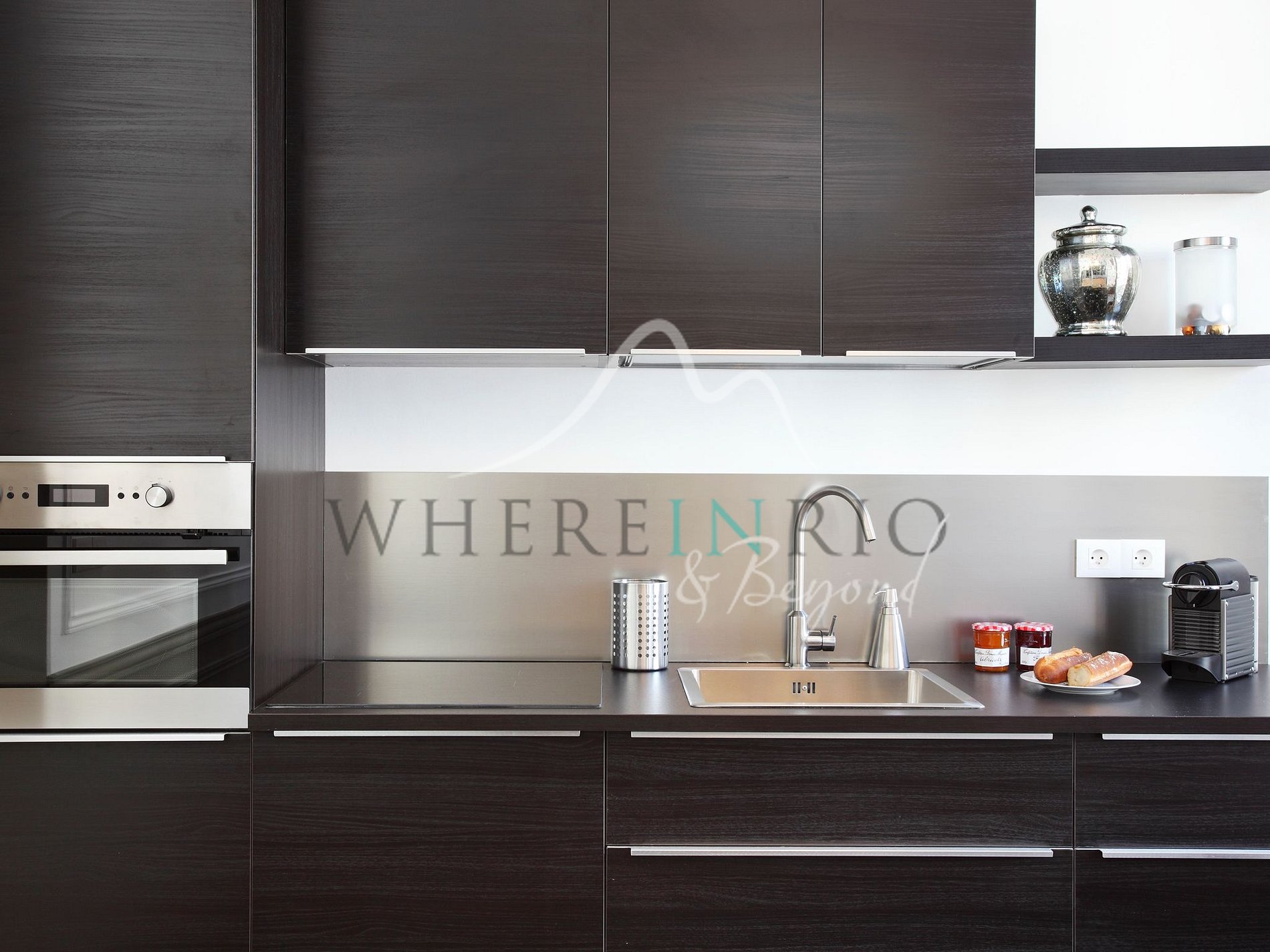 Este apartamento, situado en un primer piso con ascensor, cuenta con tres amplios cuartos y dos cuartos de baño bien equipados. La cocina, totalmente equipada, dispone de electrodomésticos modernos como frigorífico, horno microondas combi, hervidor de agua, cafetera Nespresso, lavavajillas y lavadora con secadora para su comodidad durante su estancia.