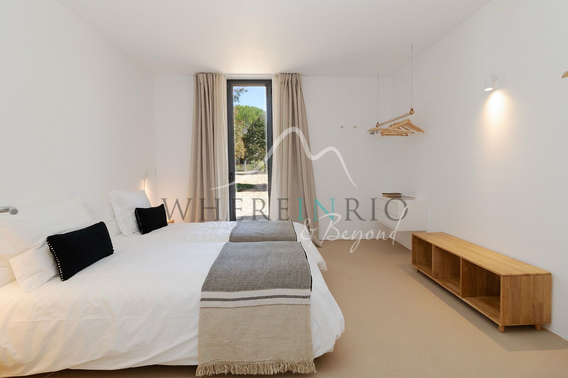 Una de las villas más exclusivas de la costa del Alentejo está disponible para alquilar durante el verano en Melides. Ubicada a menos de 10 minutos de la playa de Aberta Nova y del centro del pueblo, esta propiedad ofrece una experiencia única de confort, privacidad y conexión con la naturaleza.
