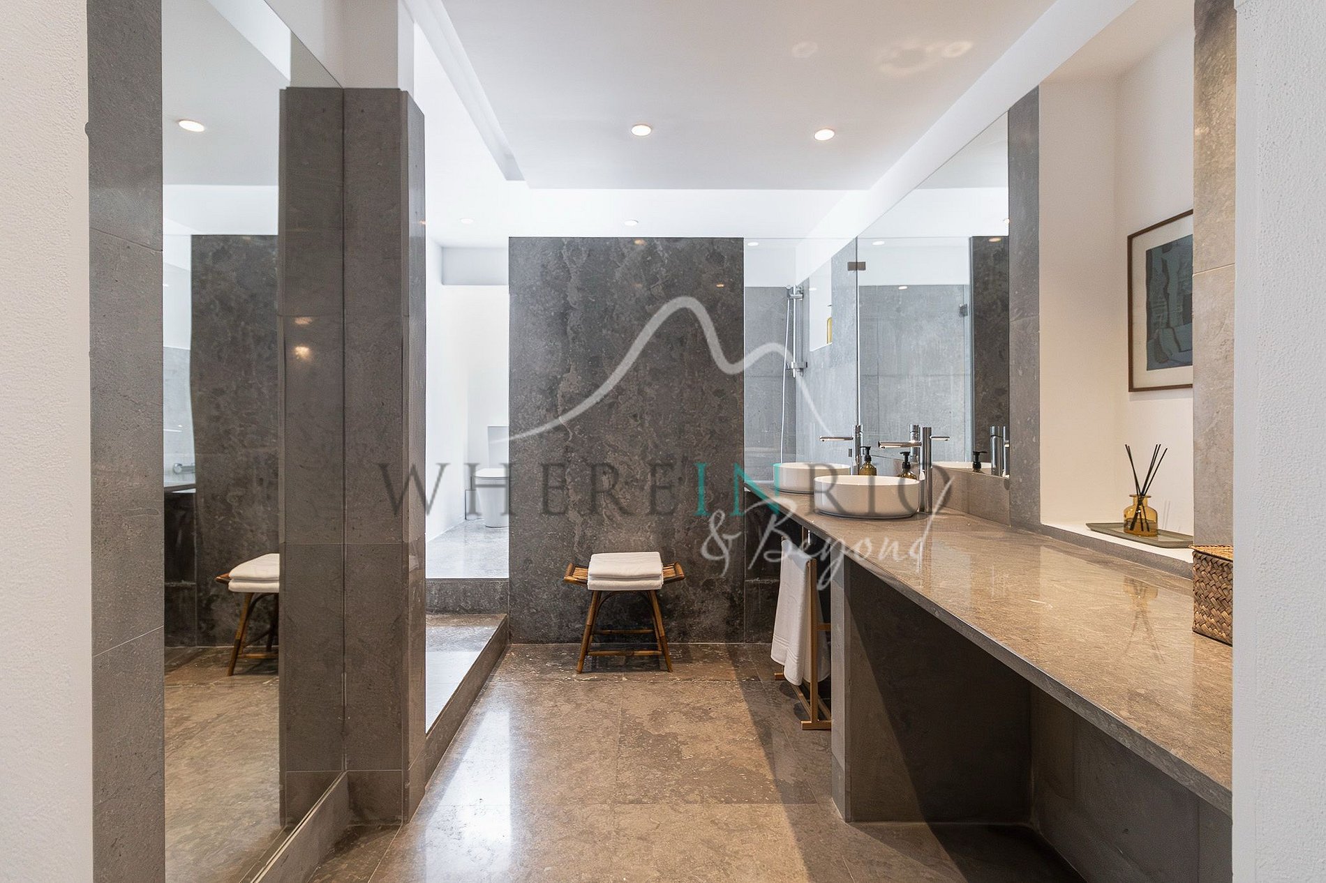 La casa combina arquitectura contemporánea con un diseño interior elegante. Cuenta con cinco habitaciones con aire acondicionado, incluidas dos amplias suites, una sala de yoga y una cocina totalmente equipada. Las zonas comunes se abren directamente a la terraza y a una piscina de agua salada, creando el entorno ideal para relajarse y disfrutar con familia o amigos.